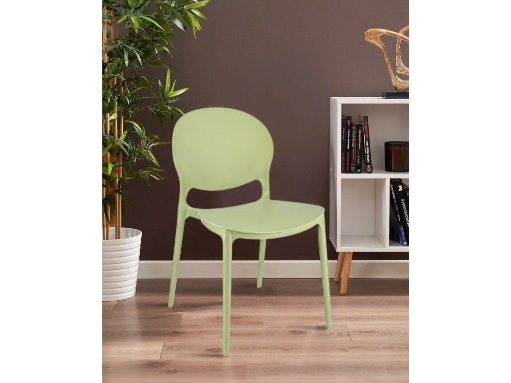 Oválne operadlo a celá stolička sú vyrobené z polypropylénu, ktorý zaisťuje dlhodobú odolnosť a rovné nohy zaisťujú dokonalú stabilitu.