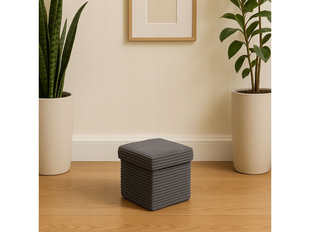 Plyšová skladacia taburetka s úložným priestorom – tmavosivá (30 × 30 × 30 cm)