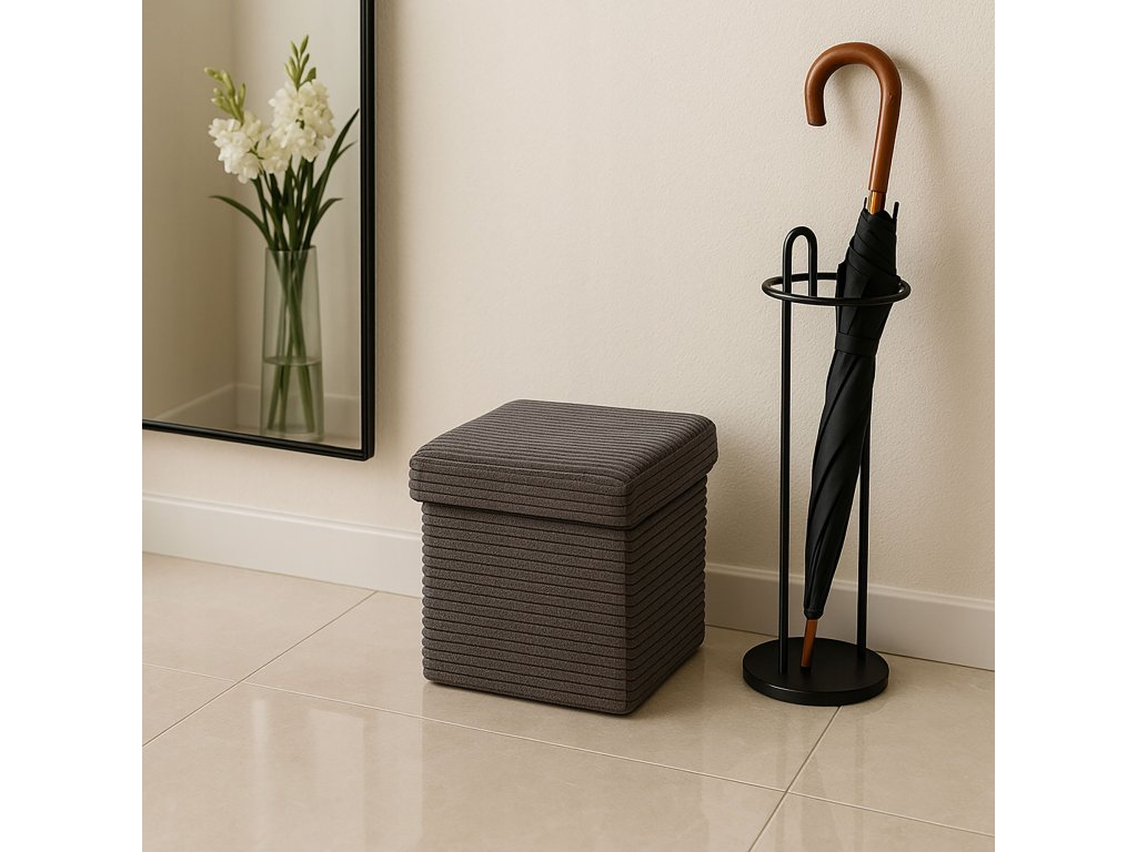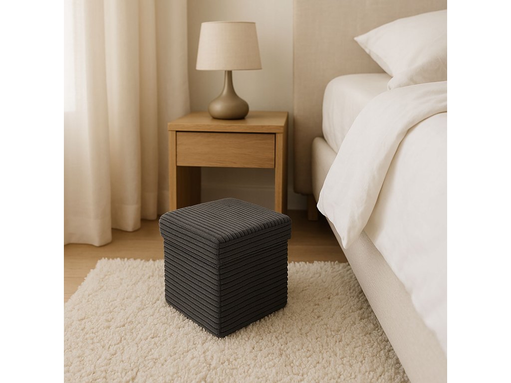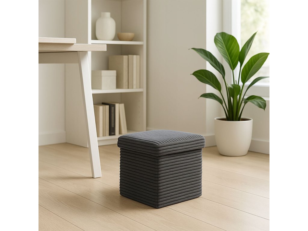 Praktická, elegantná a mimoriadne pohodlná – presne taká je naša plyšová skladacia taburetka s úložným priestorom. Vďaka modernému dizajnu v tmavosivej farbe sa ľahko hodí do každej domácnosti a stane sa funkčným doplnkom vašej obývačky, spálne či predsiene.