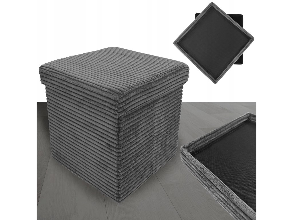 Plyšová skladacia taburetka s úložným priestorom LAMPAS - tmavosivá