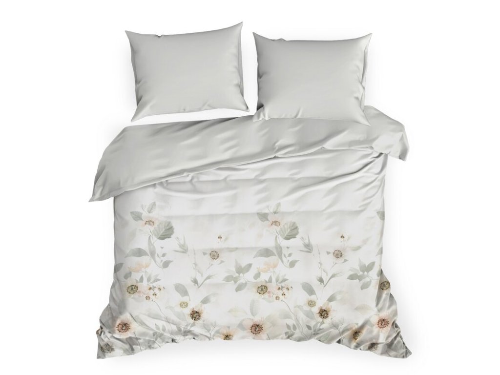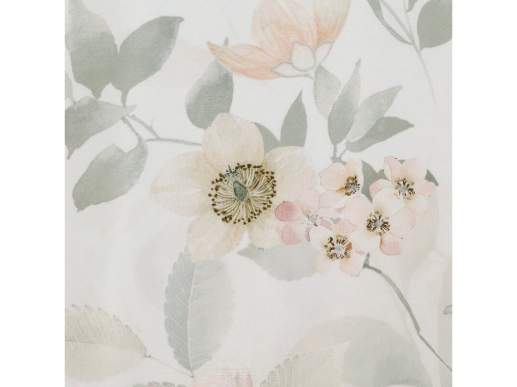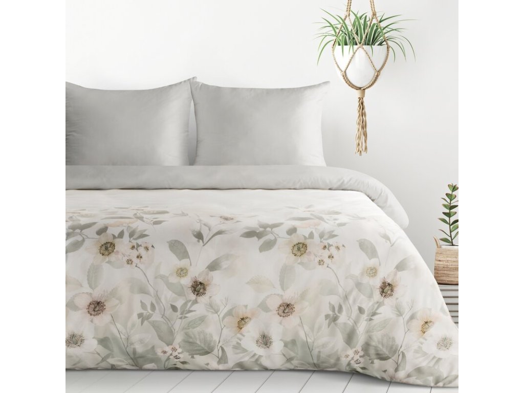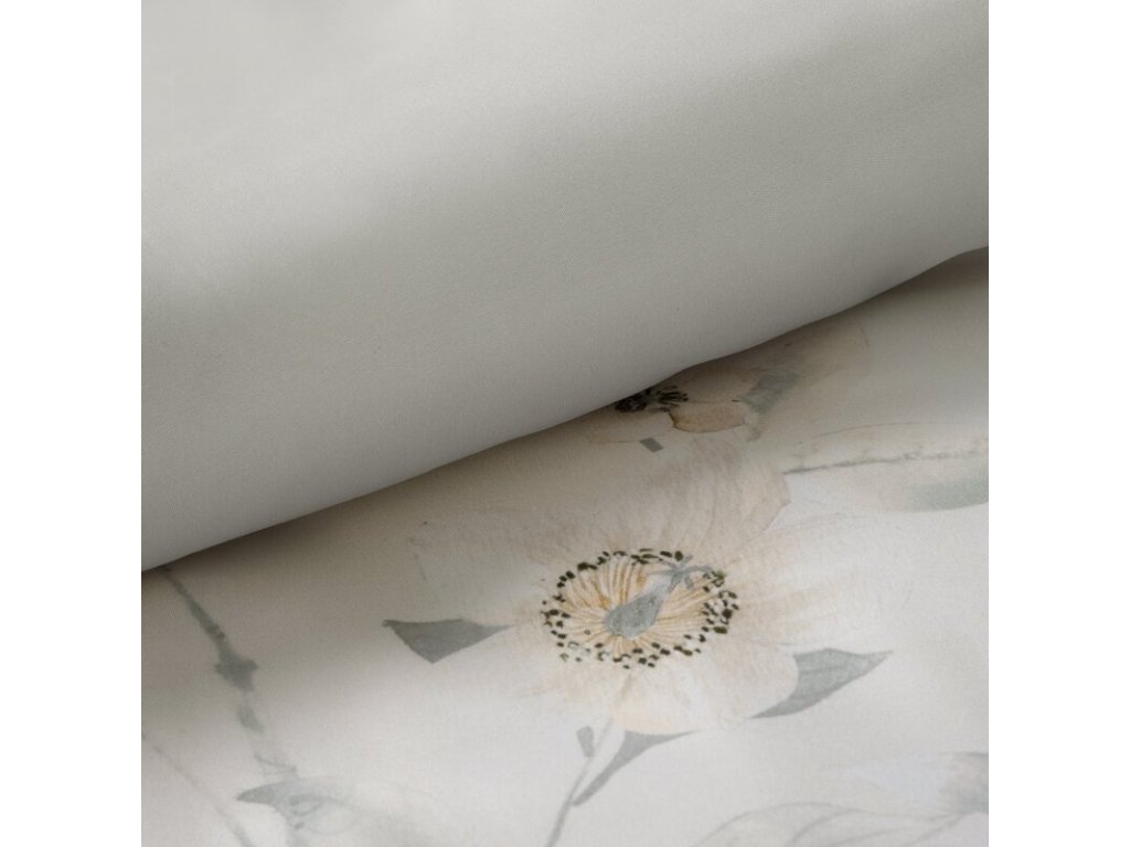 Svetlý základ krásne rozjasní spálňu a vytvorí pocit vzdušnosti, zatiaľ čo decentný kvetinový motív v nežných prírodných tónoch pôsobí harmonicky a veľmi vkusne.