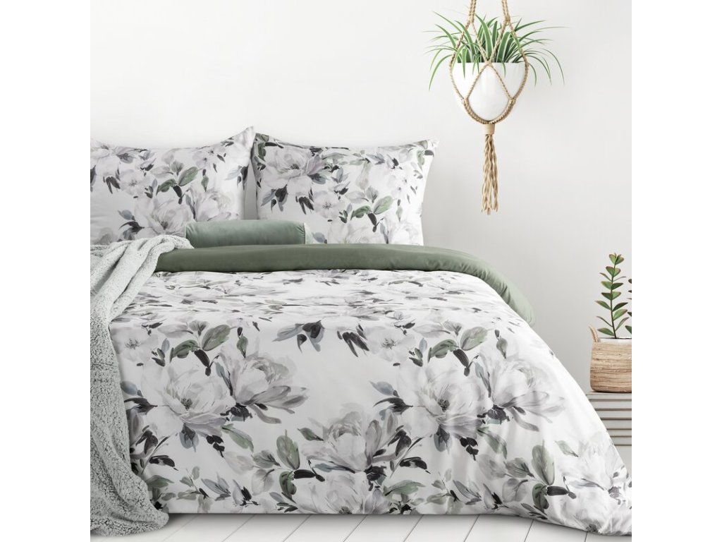Tieto posteľné obliečky s jemným kvetinovým motívom v neutrálnych tónoch premenia spálňu na pokojné, harmonické miesto na oddych.