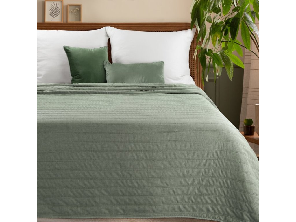 Prehoz SELEN v mätovej farbe je ideálny pre spálne v škandinávskom, modernom alebo prírodnom štýle. Krásne sa kombinuje s bielym nábytkom a prírodnými materiálmi, vytvárajúc harmonický a relaxačný priestor na odpočinok.