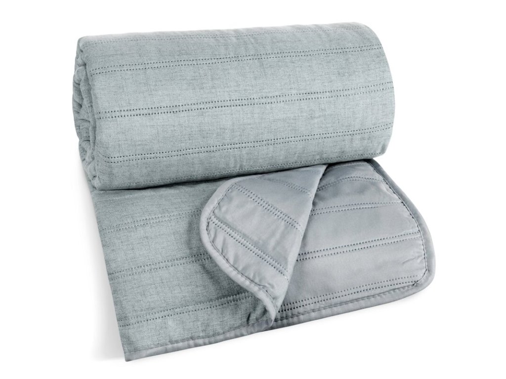 Prehoz na posteľ SELEN z imitácie ľanu - šalviový