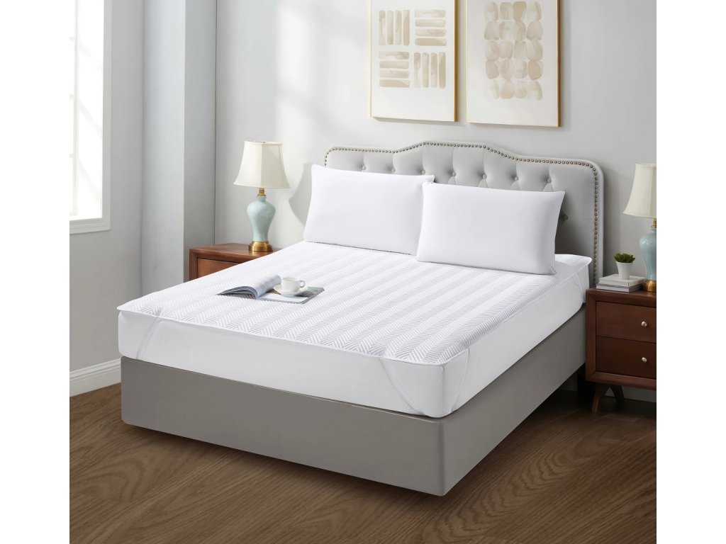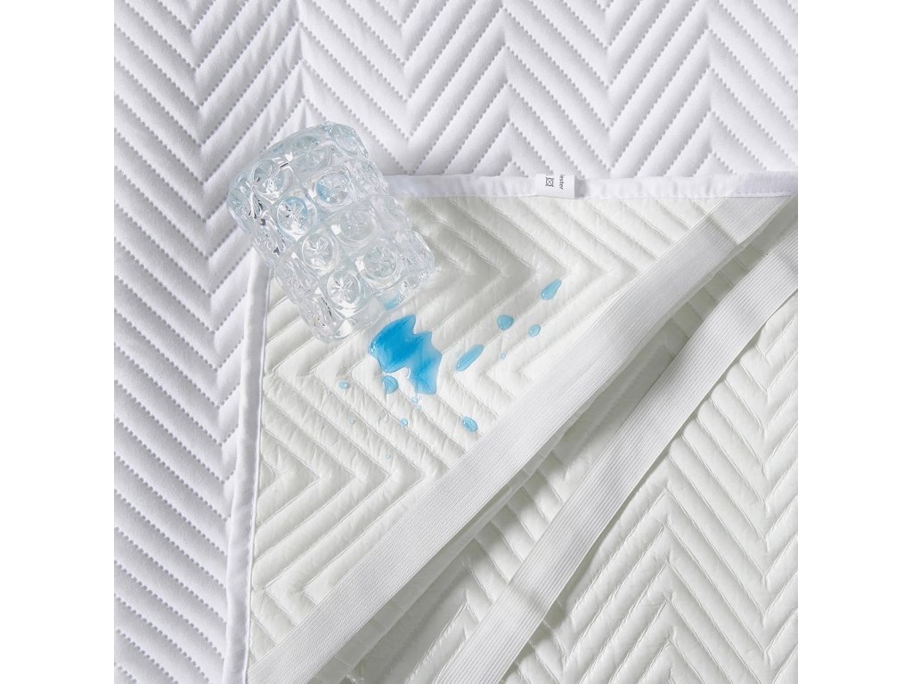 Vodeodolný chránič matraca vyrobený z mäkkého syntetického materiálu s estetickou úpravou a moderným prešívaním za tepla.