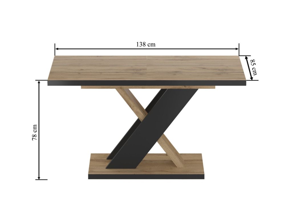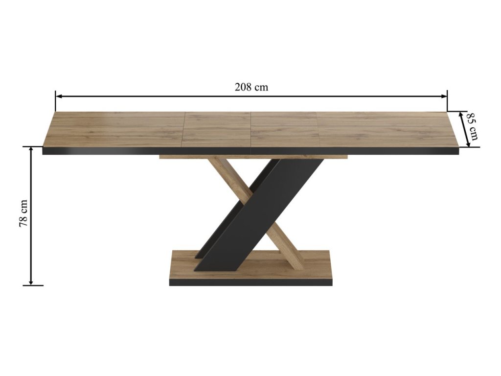 Stôl má základný rozmer 85x138 cm a po rozložení sa roztiahne na praktických 208 cm, čo poskytne dostatok miesta pre väčšiu rodinu alebo hostí. Výška 78 cm zabezpečuje pohodlné sedenie, hrúbka dosky 2,8 cm garantuje stabilitu a dlhú životnosť.