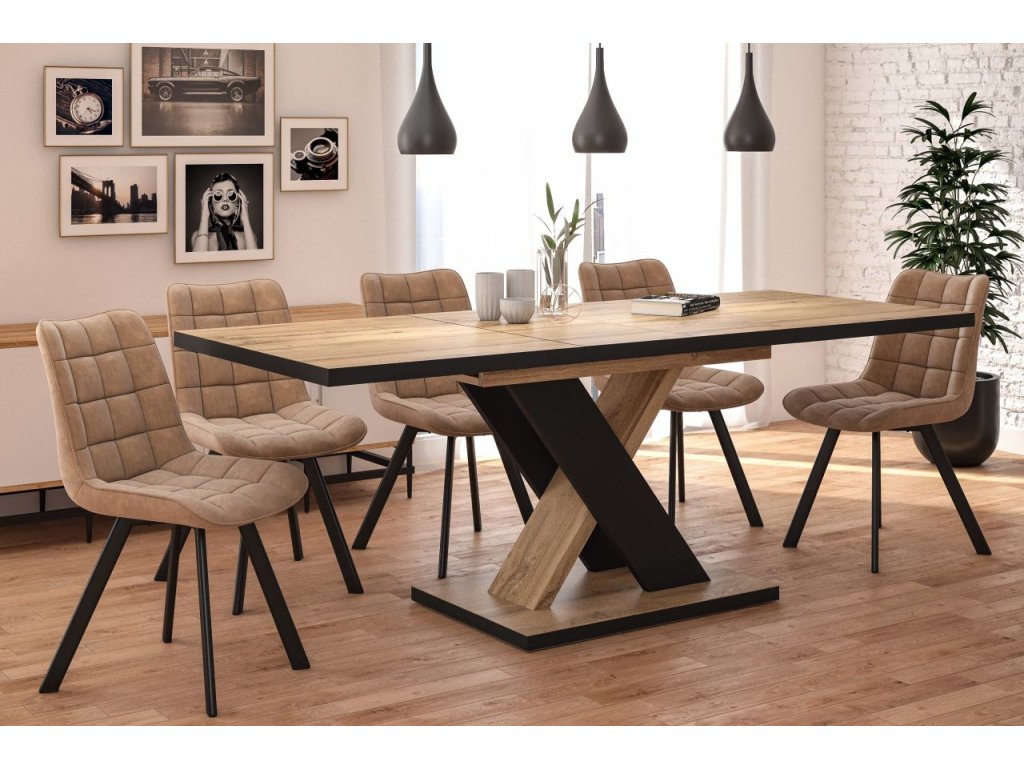 Rozkladací jedálenský stôl v modernom prevedení s dekorom dub wotan a čiernymi nohami je ideálnym riešením pre každodenné stolovanie aj pri návštevách. Kvalitná laminovaná doska zabezpečuje odolnosť a jednoduché udržovanie, zatiaľ čo elegantné prevedenie dodá vášmu jedálenskému kútiku moderný vzhľad.