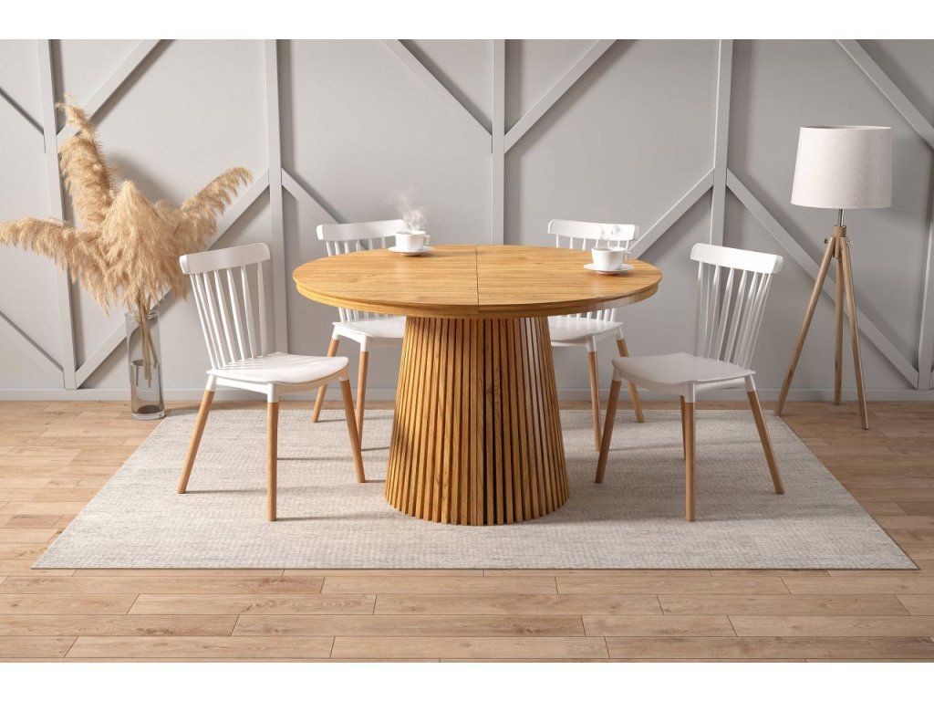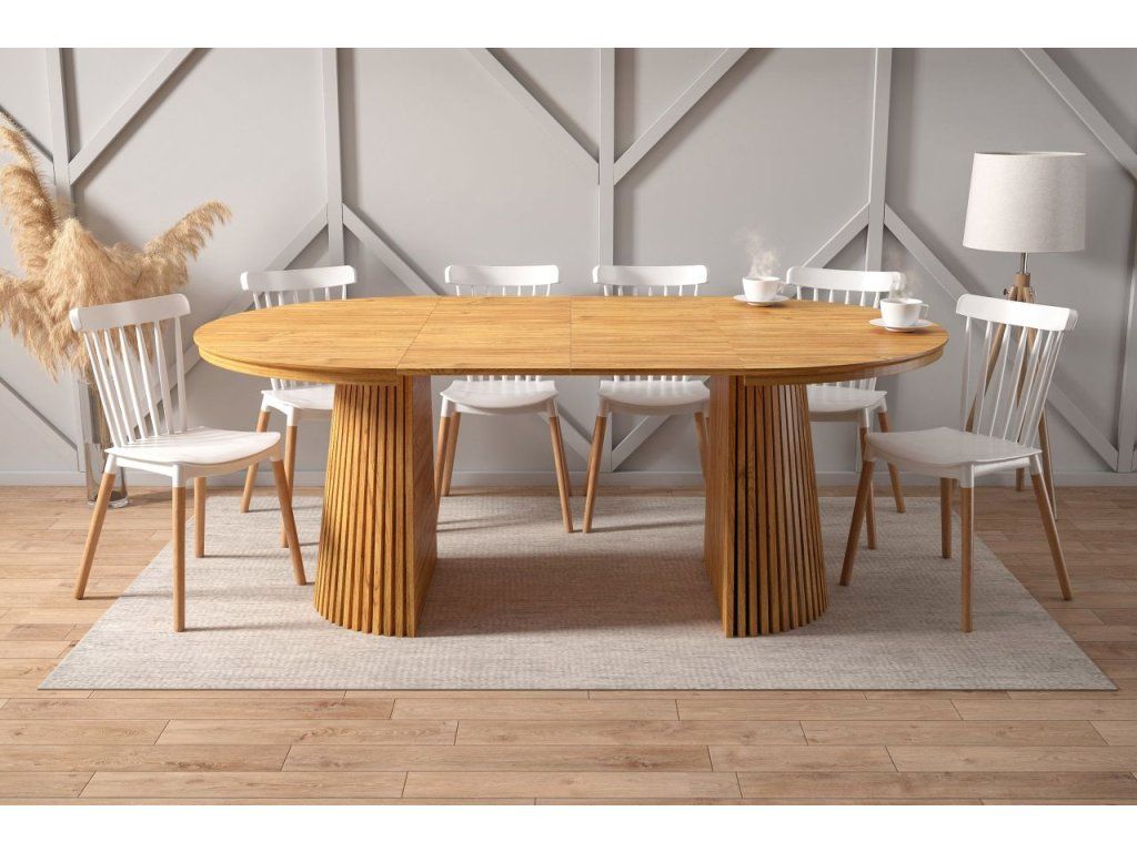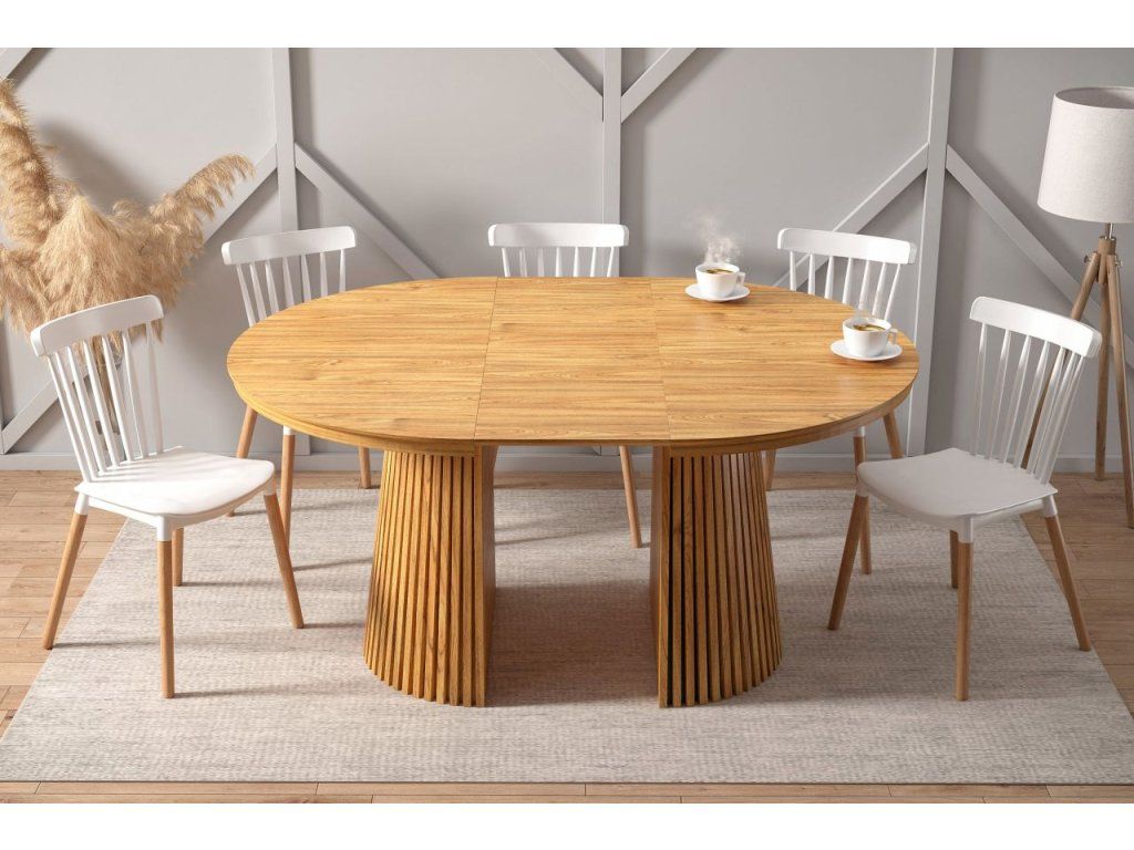 Stôl MARBELLO FLEX v decore duba krásne vynikne v kombinácii s čalúnenými stoličkami v neutrálnych tónoch – béžovej, krémovej alebo antracitovej. Hodí sa do škandinávsky ladeného interiéru s doplnkami z prírodných materiálov, rovnako ako do modernej jedálne s minimalistickým dizajnom. Je to investícia do nábytku, ktorý obstojí esteticky aj funkčne na dlhé roky.