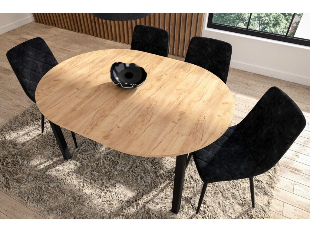 Dekor dub zlatý craft dodáva stolu prirodzený a teplý vzhľad, zatiaľ čo čierne prvky podčiarkujú moderný a mierne industriálny charakter. Stôl sa tak skvele hodí do interiérov v štýle modern, loft aj škandinávskom.