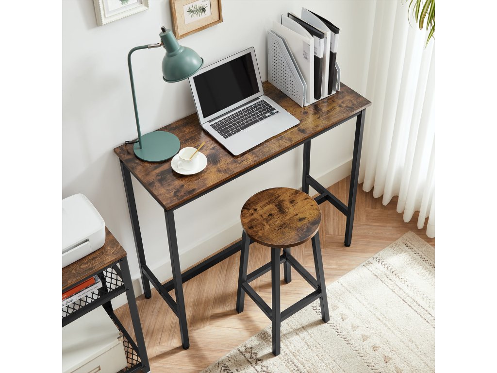 Štýlový barový set s rustikálnym dekorom dreva je ideálnym riešením pre tých, ktorí hľadajú spojenie prirodzeného vzhľadu, funkčnosti a úspory priestoru. Kombinácia teplého, rustikálneho drevodekoru s čiernou kovovou konštrukciou vytvára moderný industriálny vzhľad, ktorý sa skvele hodí do kuchyne, jedálenského kúta, loftového interiéru či menšieho bytu.
