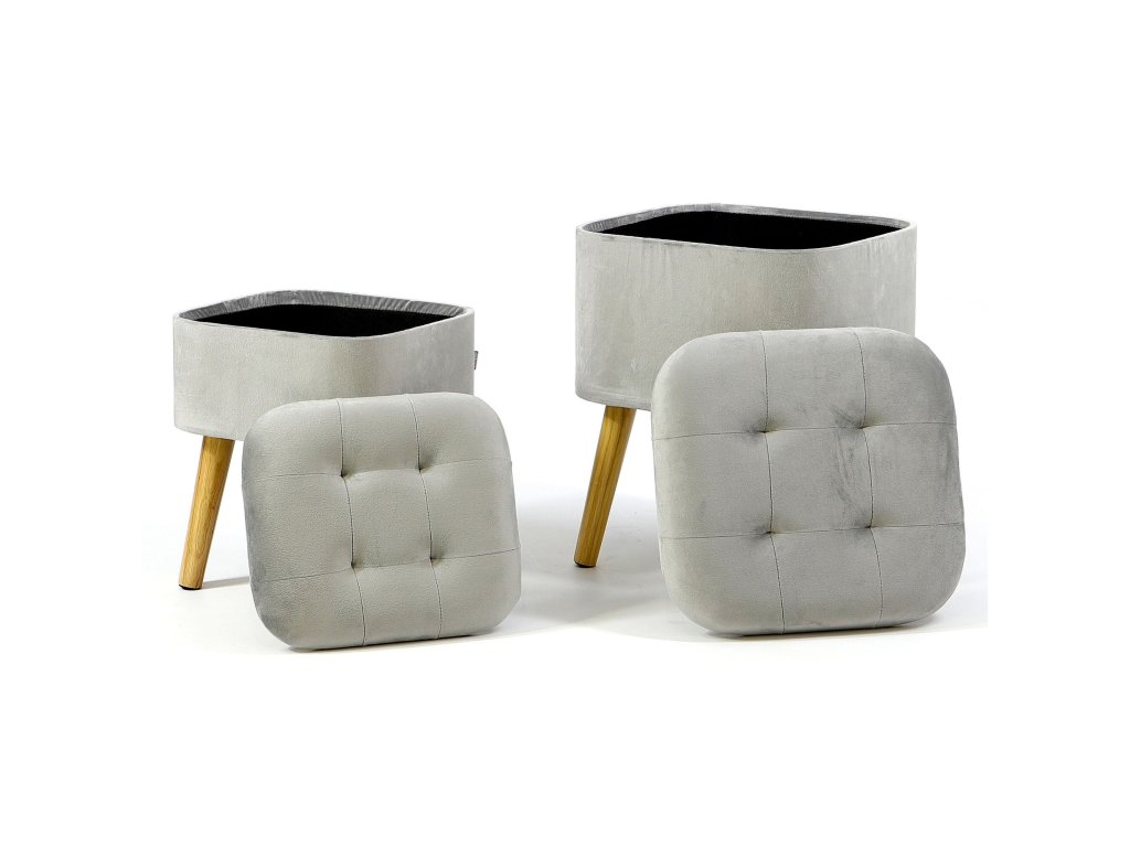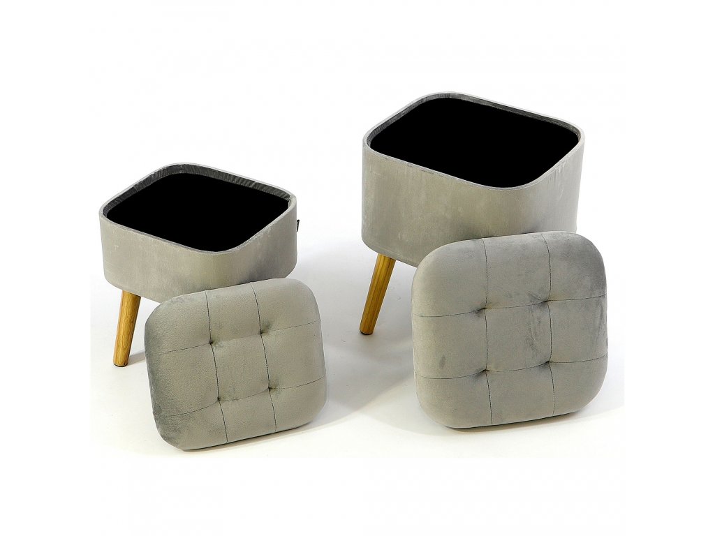 Sada zamatových taburetiek ROY - svetlo sivé