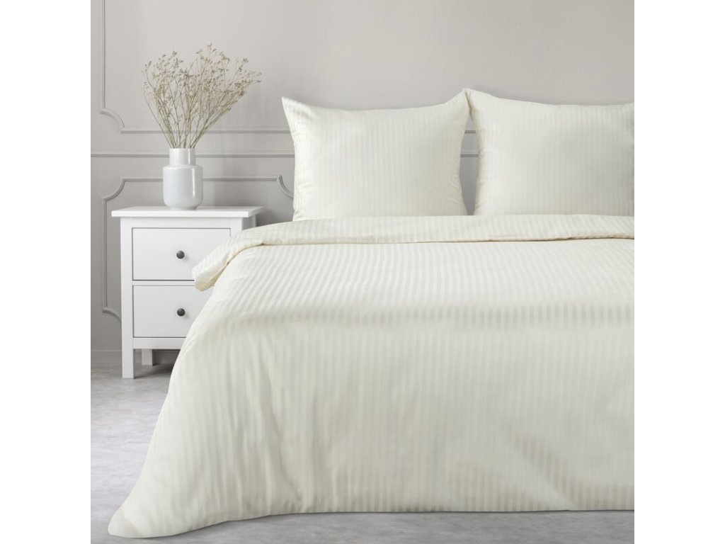 Saténové posteľné obliečky VERA s jemnými prúžkami v krémovej farbe
