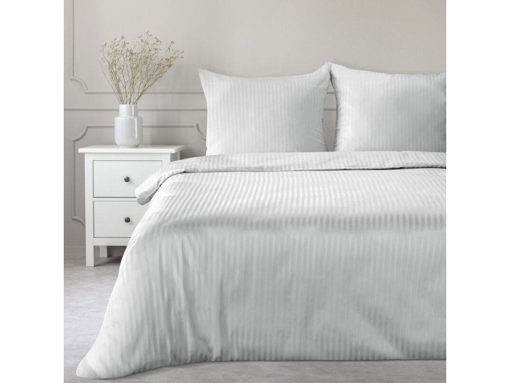 Saténové posteľné obliečky VERA s jemnými prúžkami v striebornej farbe