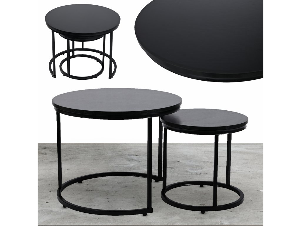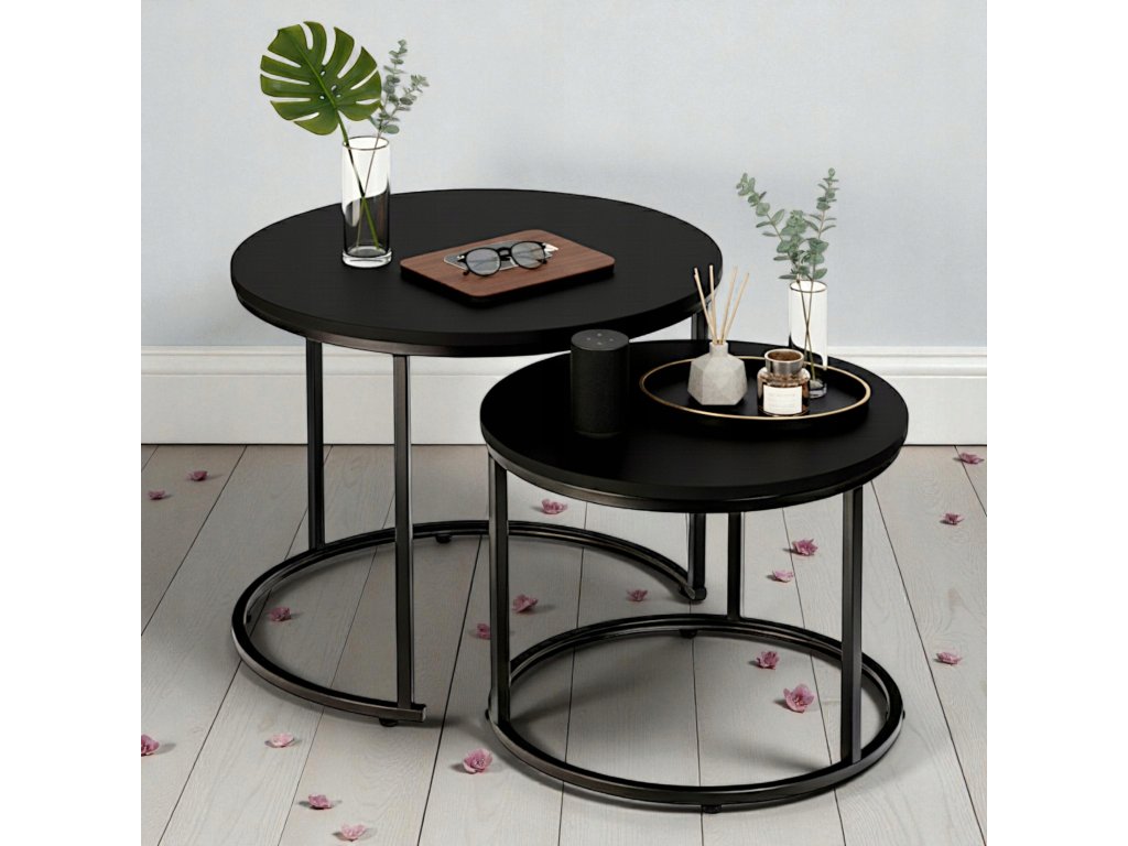 Set 2ks čiernych kávových stolíkov LOFT DUO 60/40cm