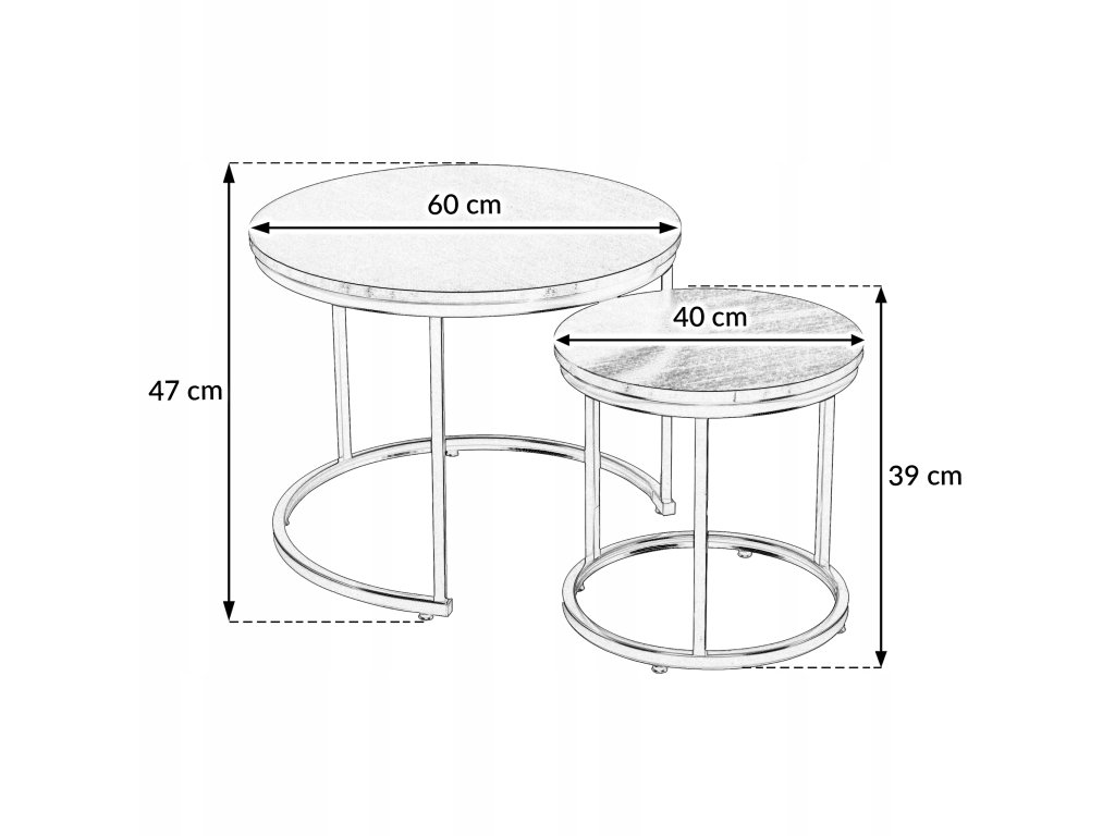 Dva stolíky rôznych veľkostí (60 × 60 cm a 40 × 40 cm) ponúkajú praktické a flexibilné riešenie pre každodenné používanie. Väčší stolík poslúži ako hlavný kávový stolík, zatiaľ čo menší môžete využiť ako odkladací stolík na knihu, dekorácie alebo šálku kávy. Menší stolík je možné jednoducho zasunúť pod väčší, čo je ideálne riešenie najmä do menších obývačiek, kde je dôležitá úspora priestoru.