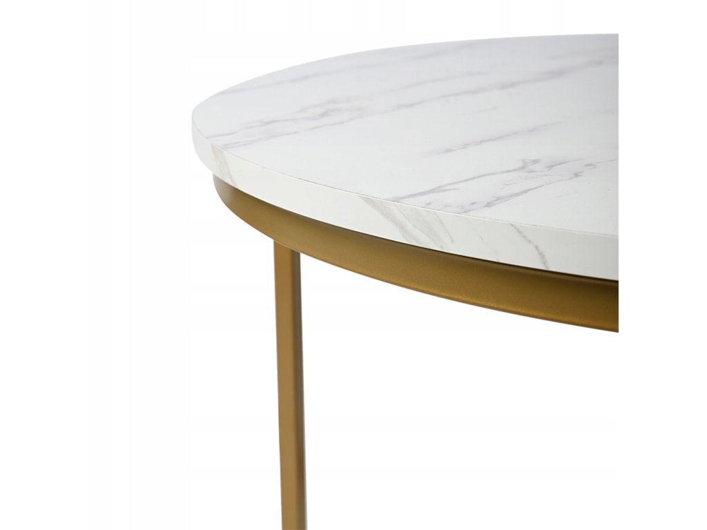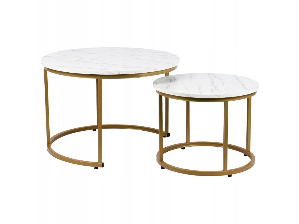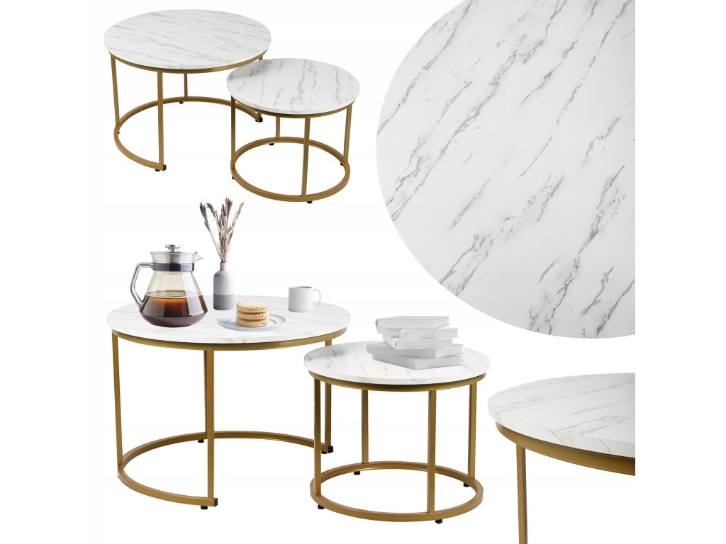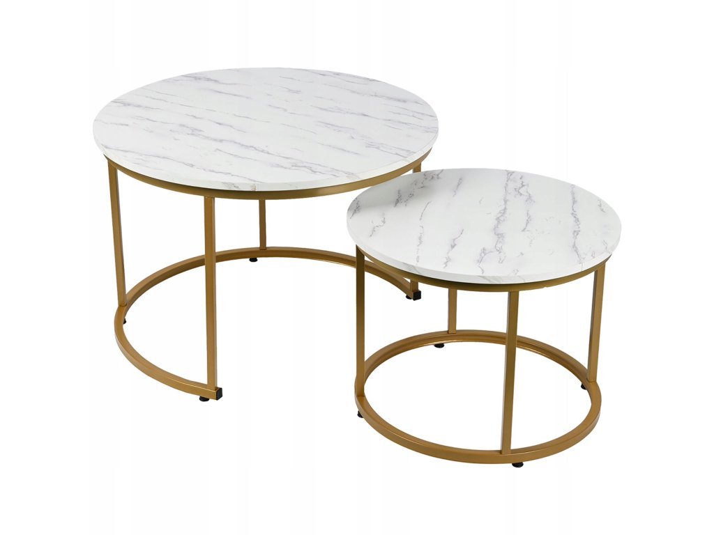 Set 2 ks konferenčných stolíkov s bielou mramorovou imitáciou a zlatými nohami (70 cm a 50 cm)