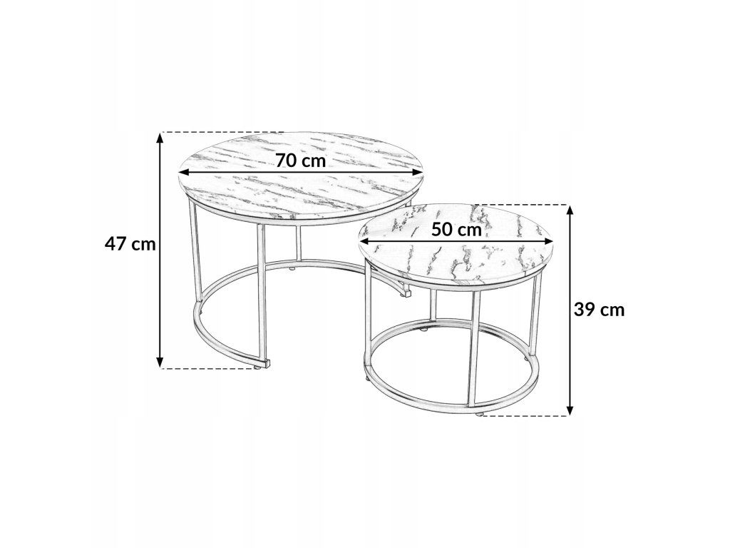 Väčší stolík s priemerom 70 cm a menší s priemerom 50 cm ponúkajú praktické využitie – môžete ich umiestniť spolu pre efekt vrstvenia alebo oddelene podľa potreby.