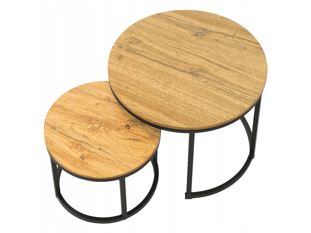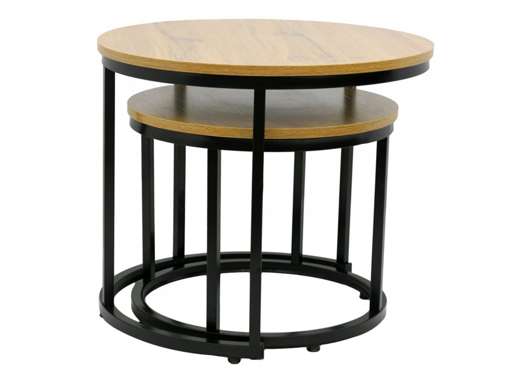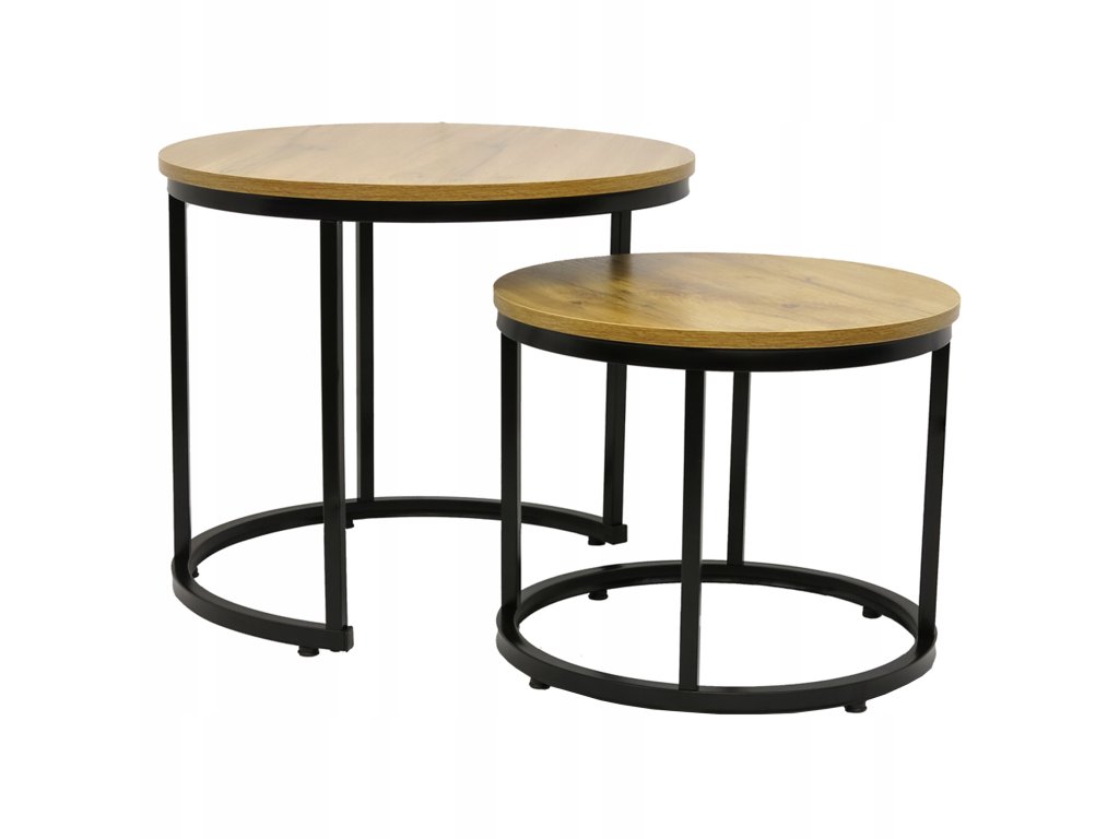 Set 2ks kávových stolíkov 70/50 - dub prírodný / čierne nohy