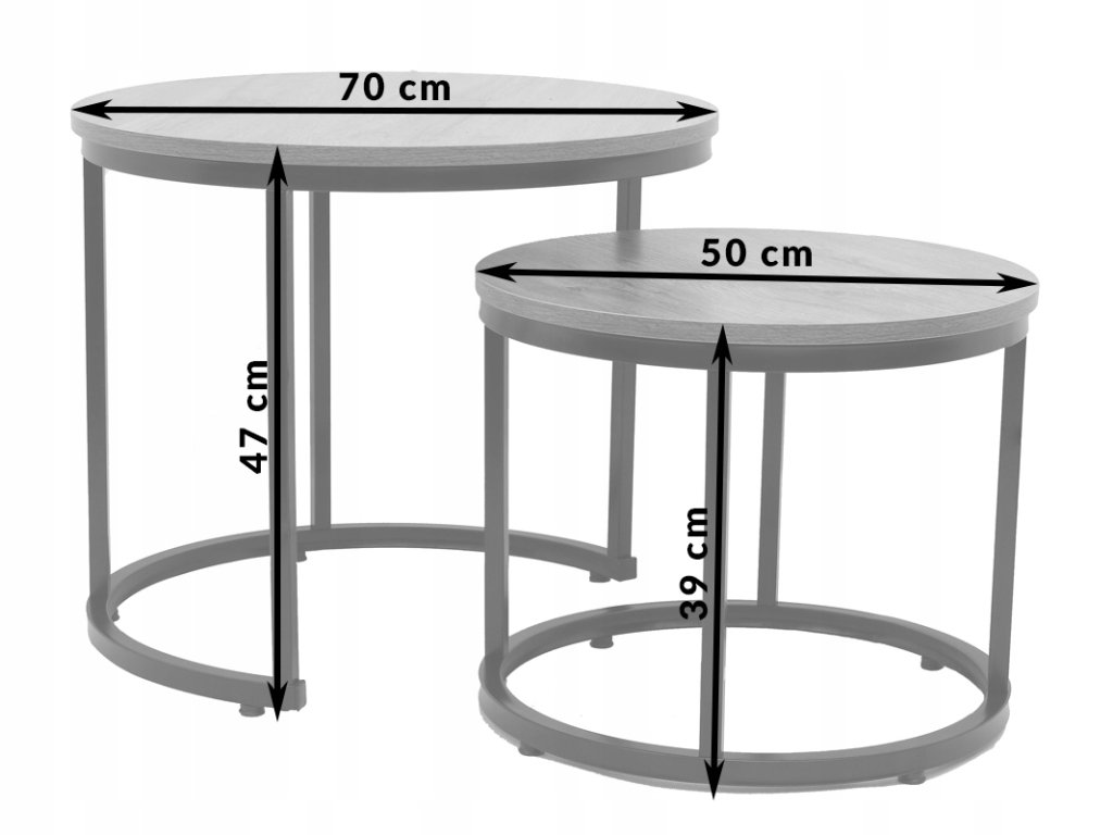 Väčší stolík s priemerom 70 cm a menší s priemerom 50 cm môžete umiestniť spolu pre efekt vrstvenia alebo samostatne podľa potreby a priestoru.