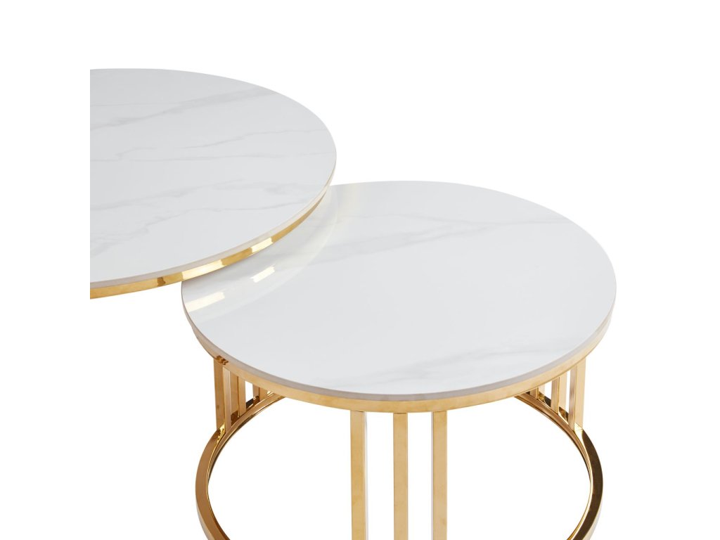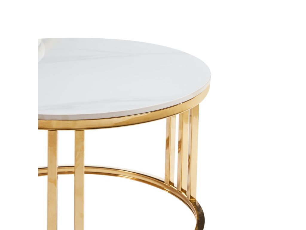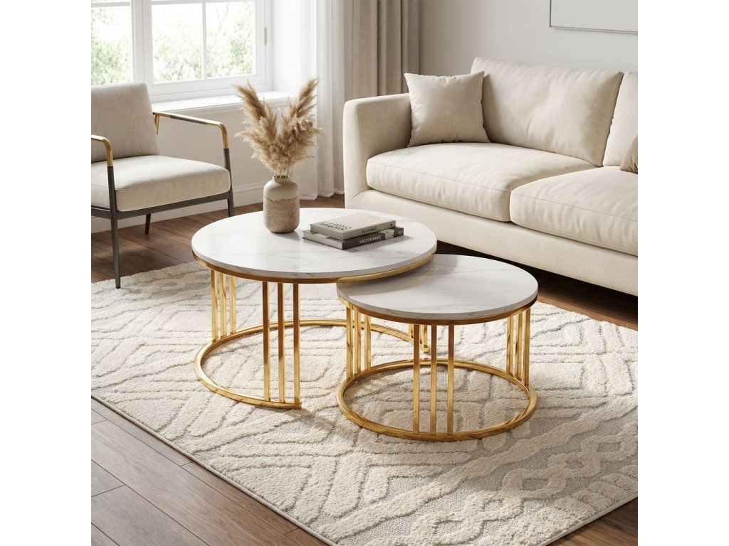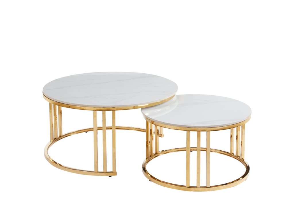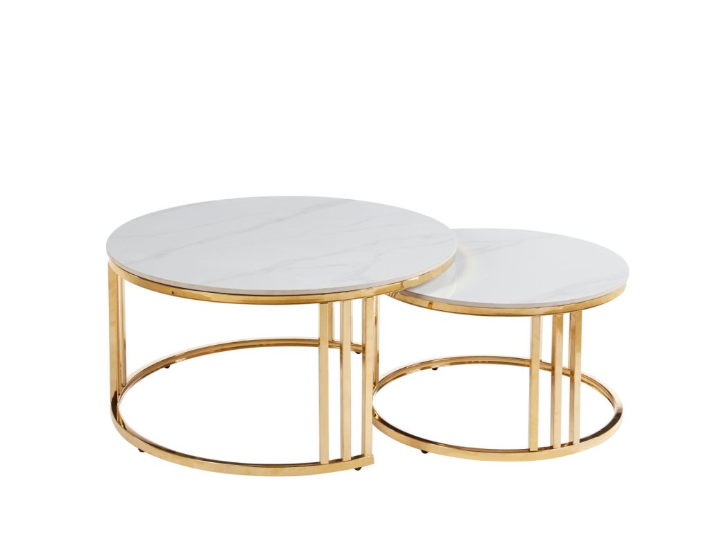 Set 2ks kávových stolíkov 80/60 - Biely mramor & zlatá lesklá konštrukcia