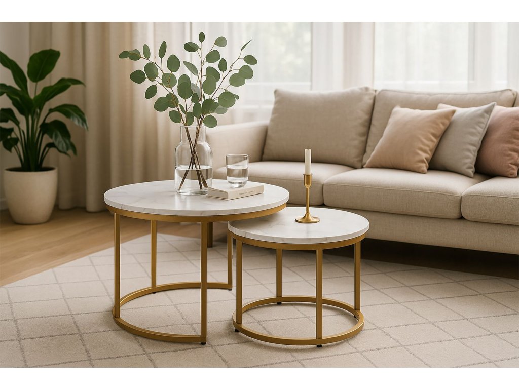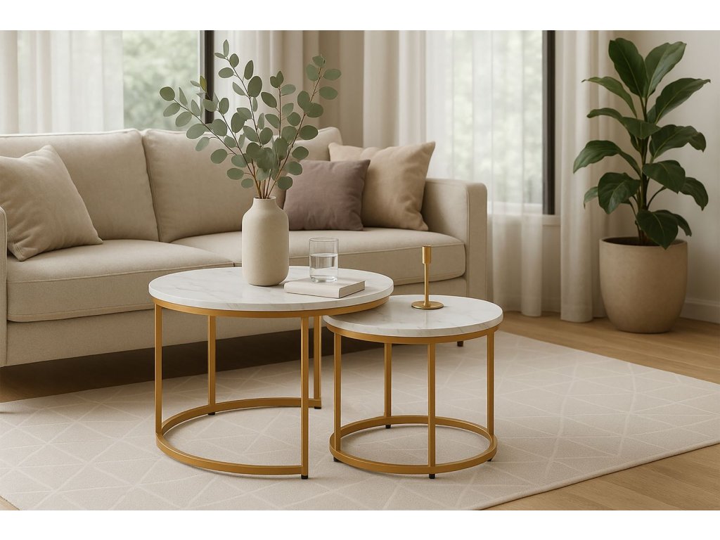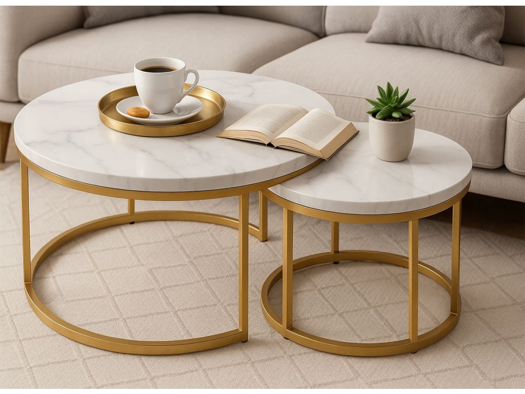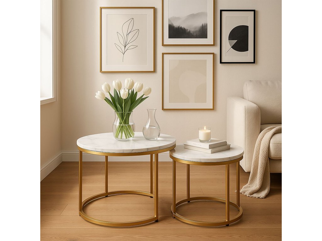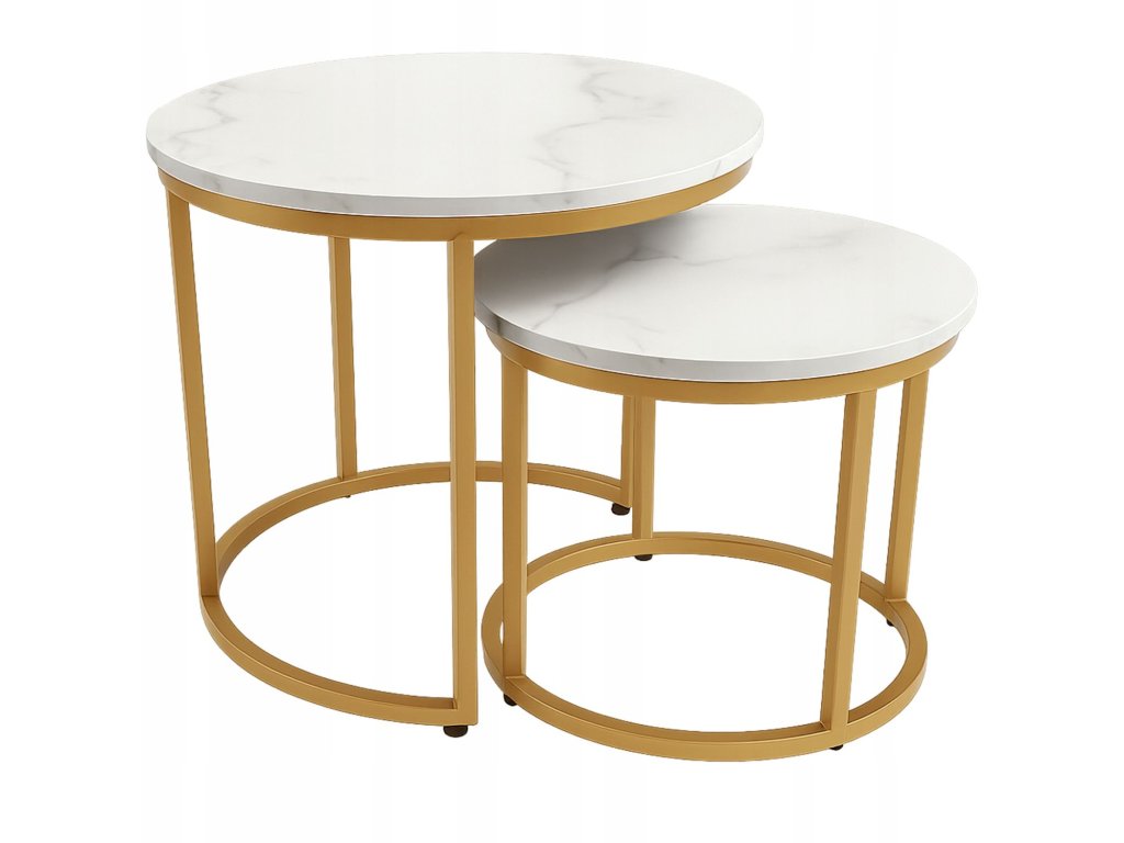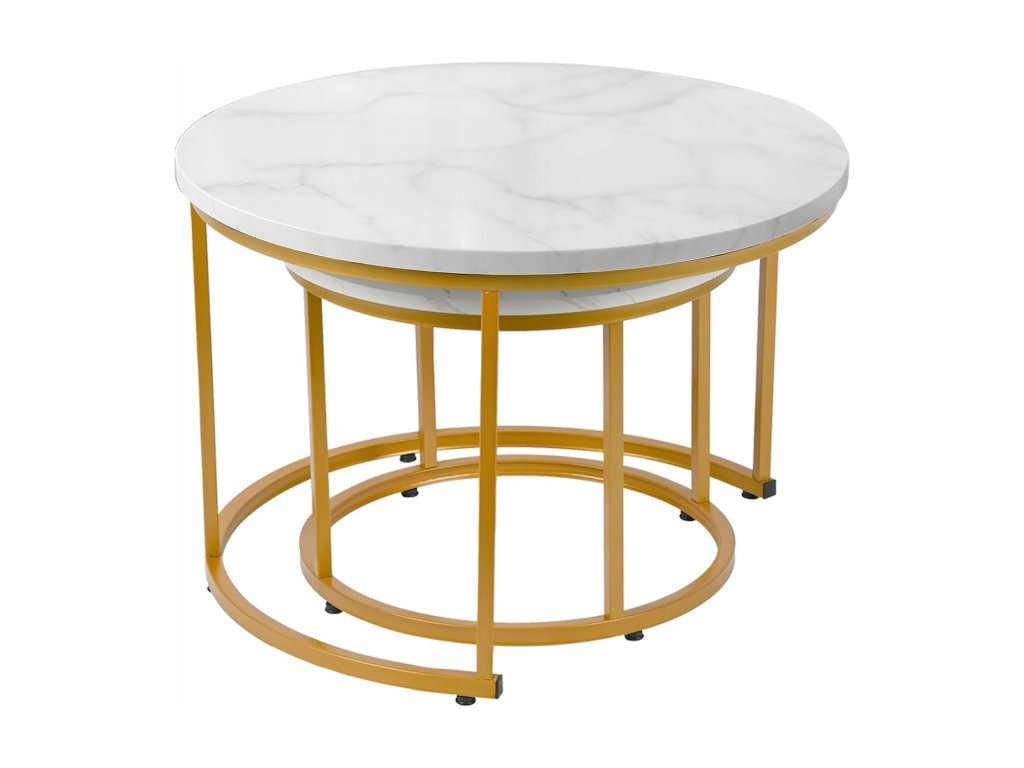 Set 2ks kávových stolíkov - biely mramor / zlaté nohy