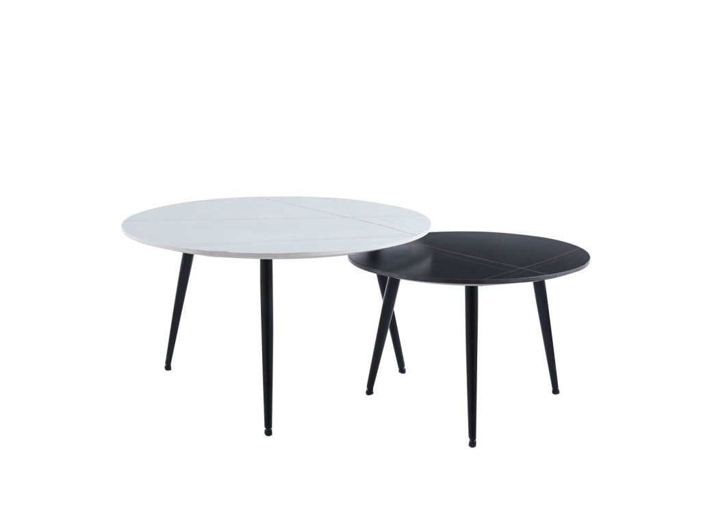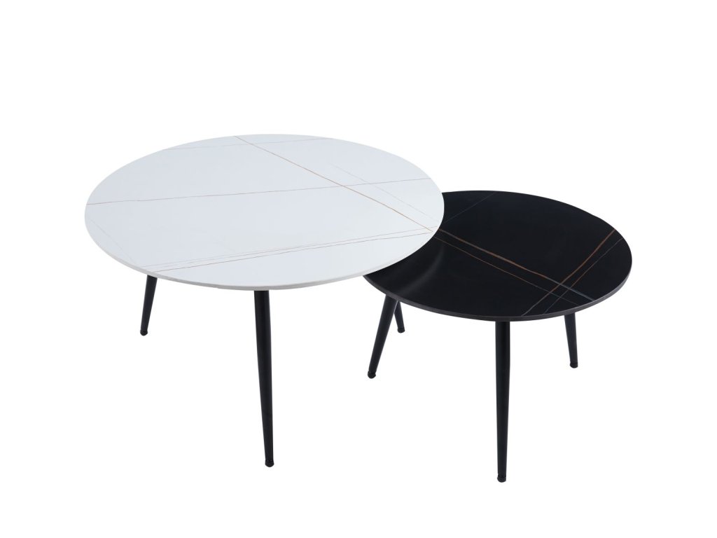 Set kávových stolíkov s keramickými doskami - biely a čierny