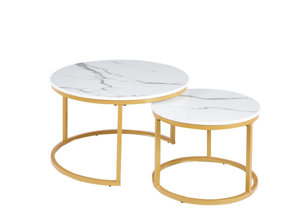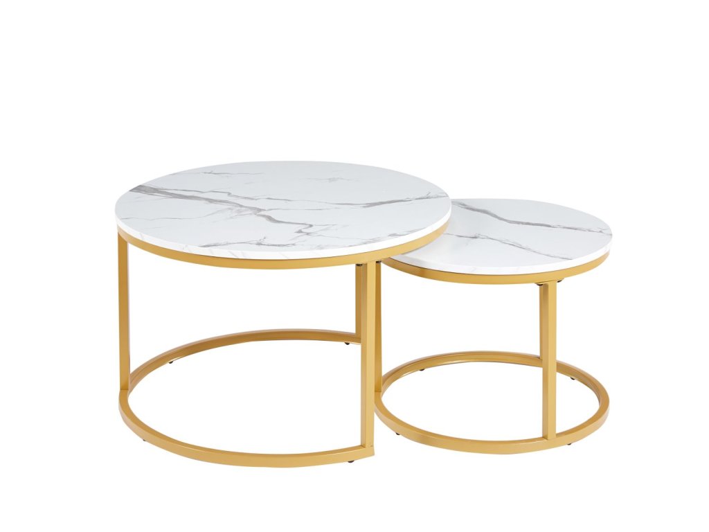 Set kávových stolíkov s mramorovým vzorom 70/50 - biely so zlatou konštrukciou