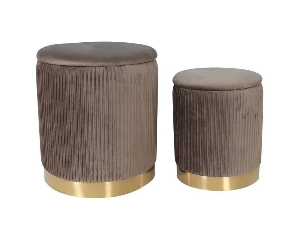 Taburetky sú čalúnené jemným a mäkkým velvetom, ktorý pôsobí luxusne a príjemne na dotyk. Krásne plisovanie dodáva povrchu dekoratívnu textúru, vďaka ktorej taburetky pôsobia elegantne a mimoriadne štýlovo.