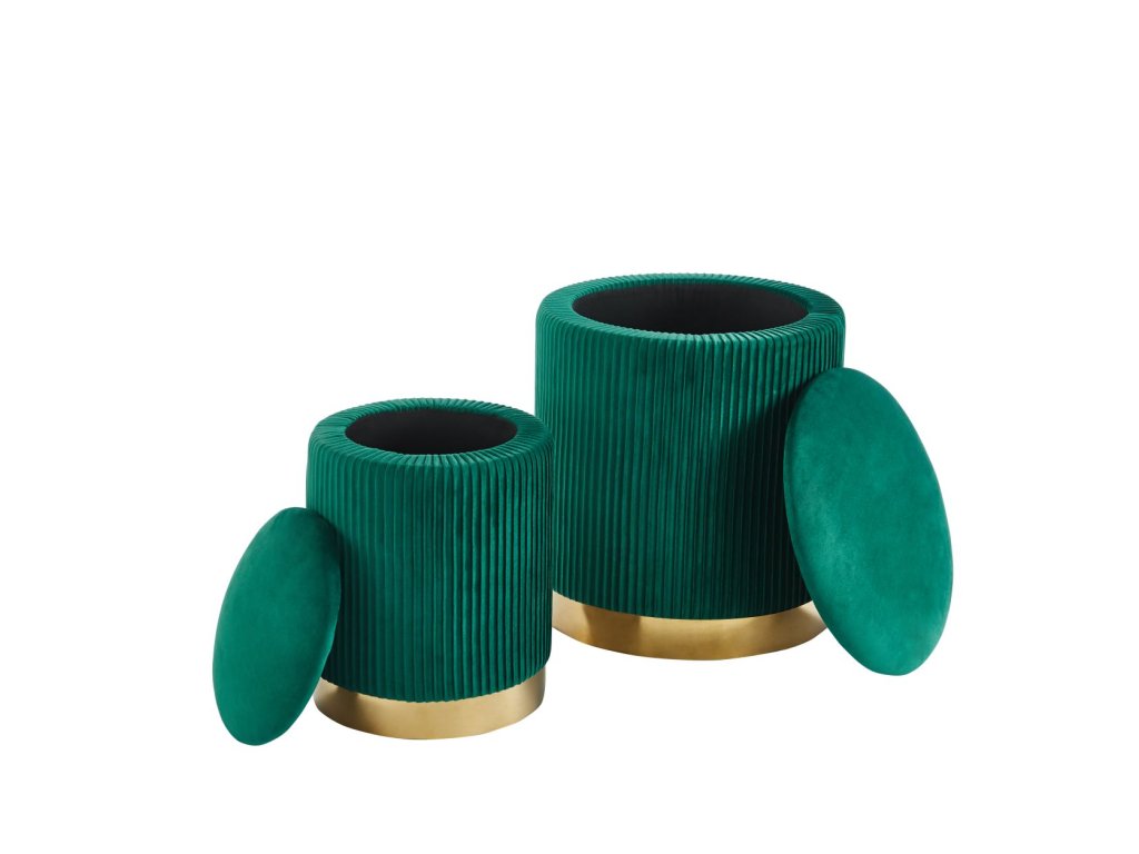 Objavte dokonalé spojenie štýlu a funkčnosti s exkluzívnym setom dvoch tmavozelených taburetiek s úložným priestorom. Tento moderný doplnok zaujme v každom interiéri – od obývačky, cez spálňu až po predsieň. Vďaka luxusnému vzhľadu, kvalitným materiálom a inteligentnému riešeniu úložného priestoru sa stane nepostrádateľnou súčasťou vášho bývania.