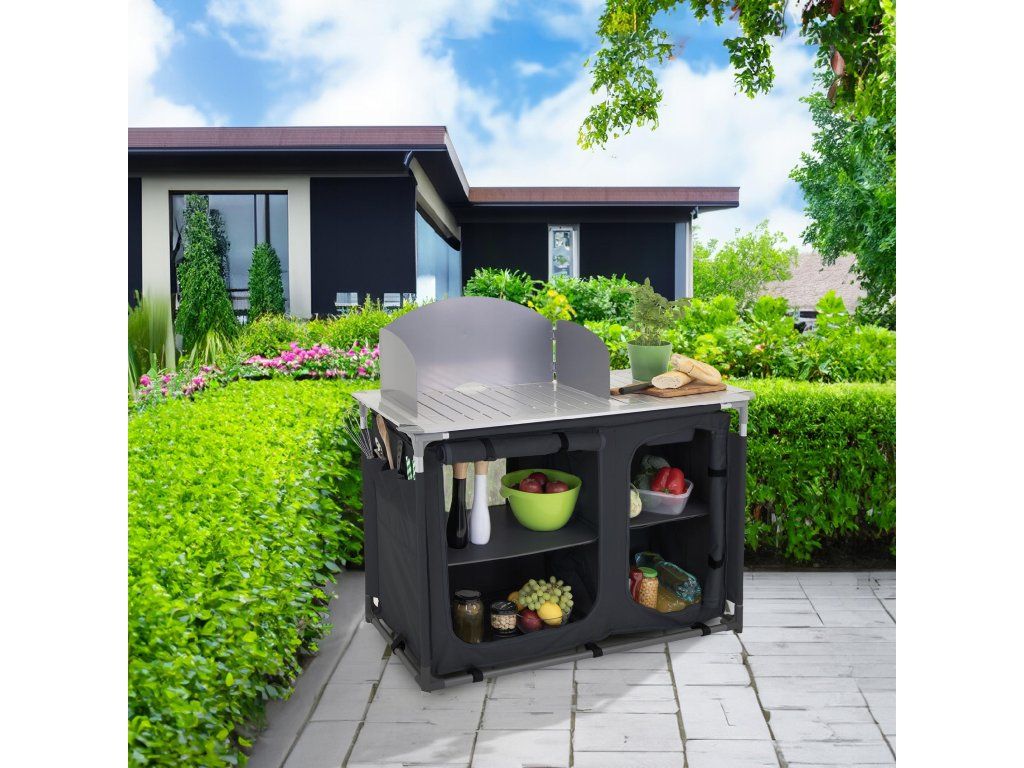 Hlavná pracovná plocha je vyrobená z kovu, čo znamená, že na ňu bez obáv postavíte kempingový varič. Povrch nedeformuje teplo ani tlak bežného kuchynského náčinia.