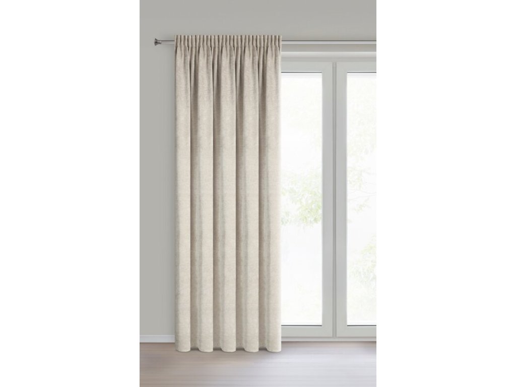 Svetlobéžový ženilkový záves NESKA na riasiacej páske 140x270cm