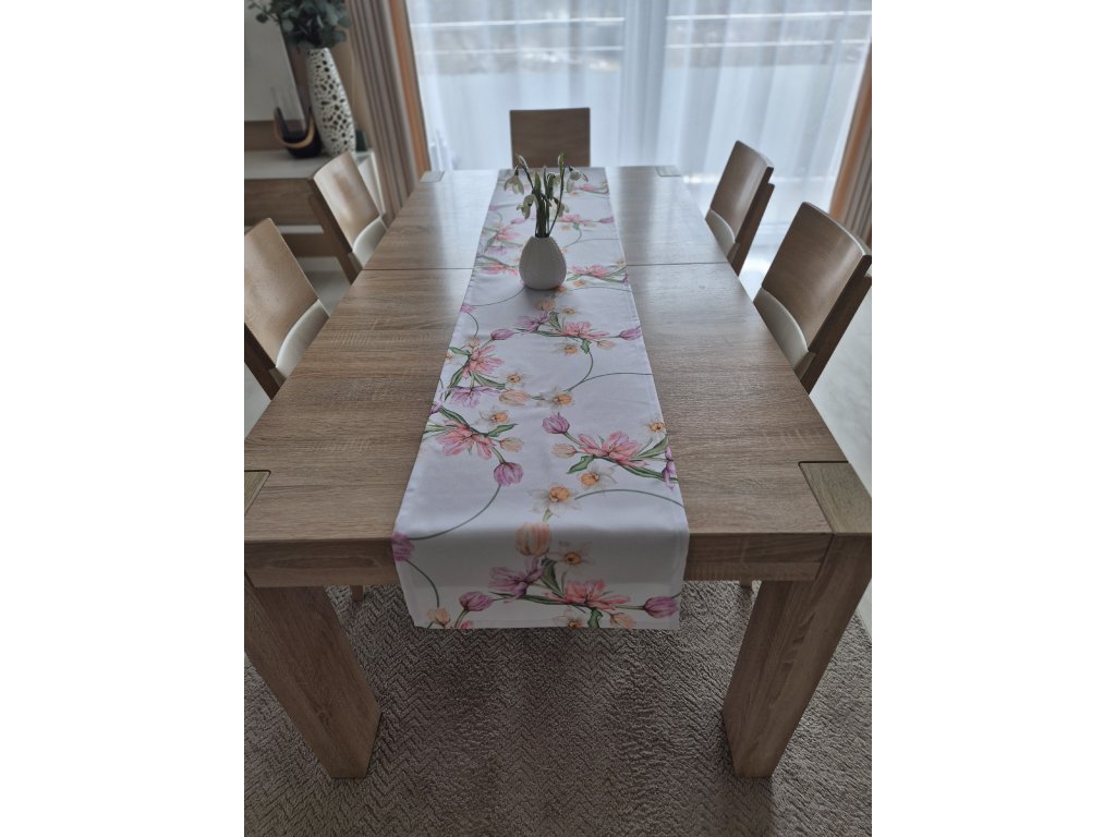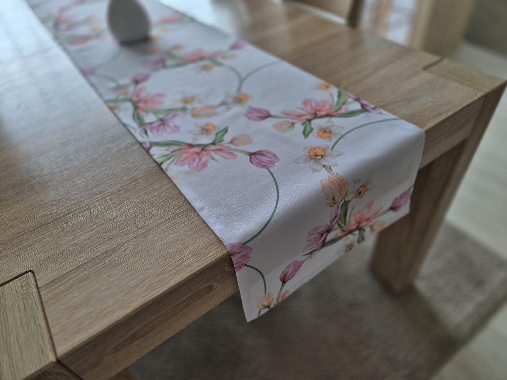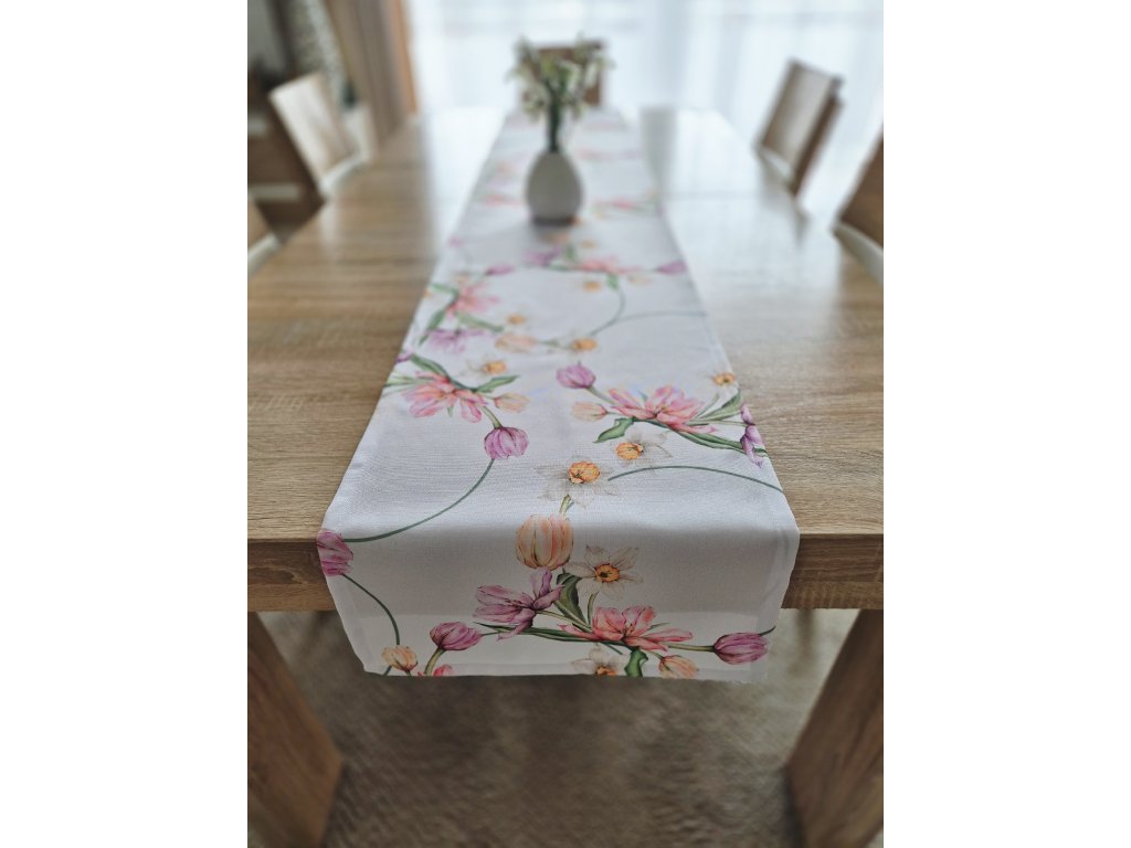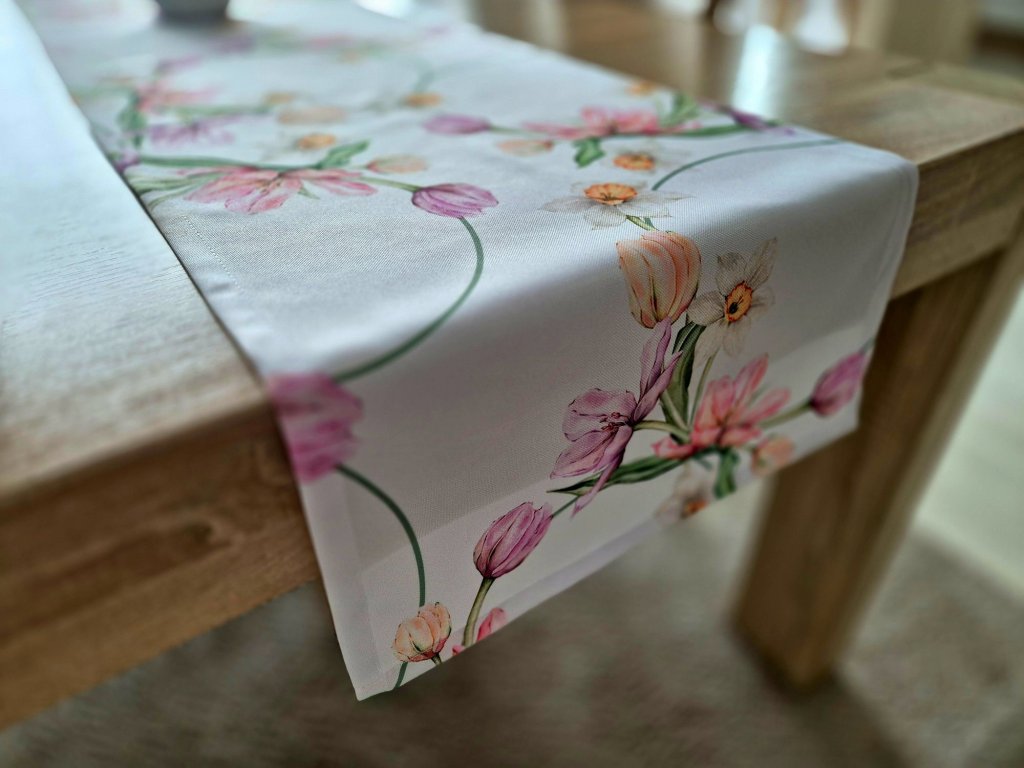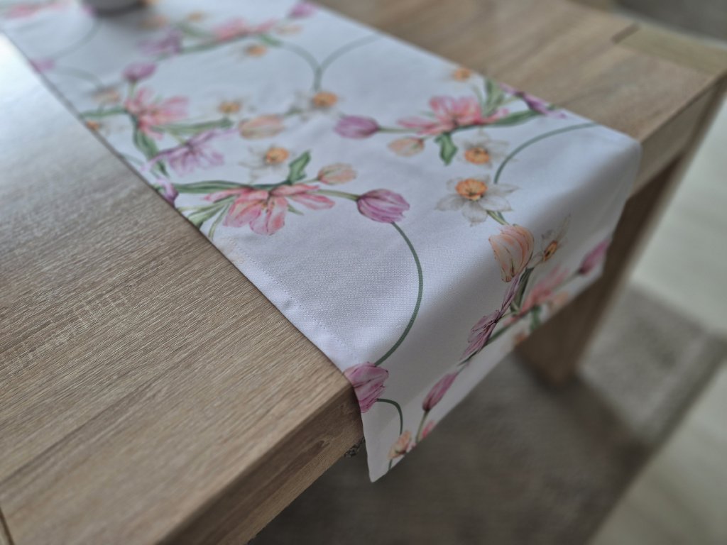 Teflónová štóla na stôl Jarné kvety – elegantná kvetinová potlač