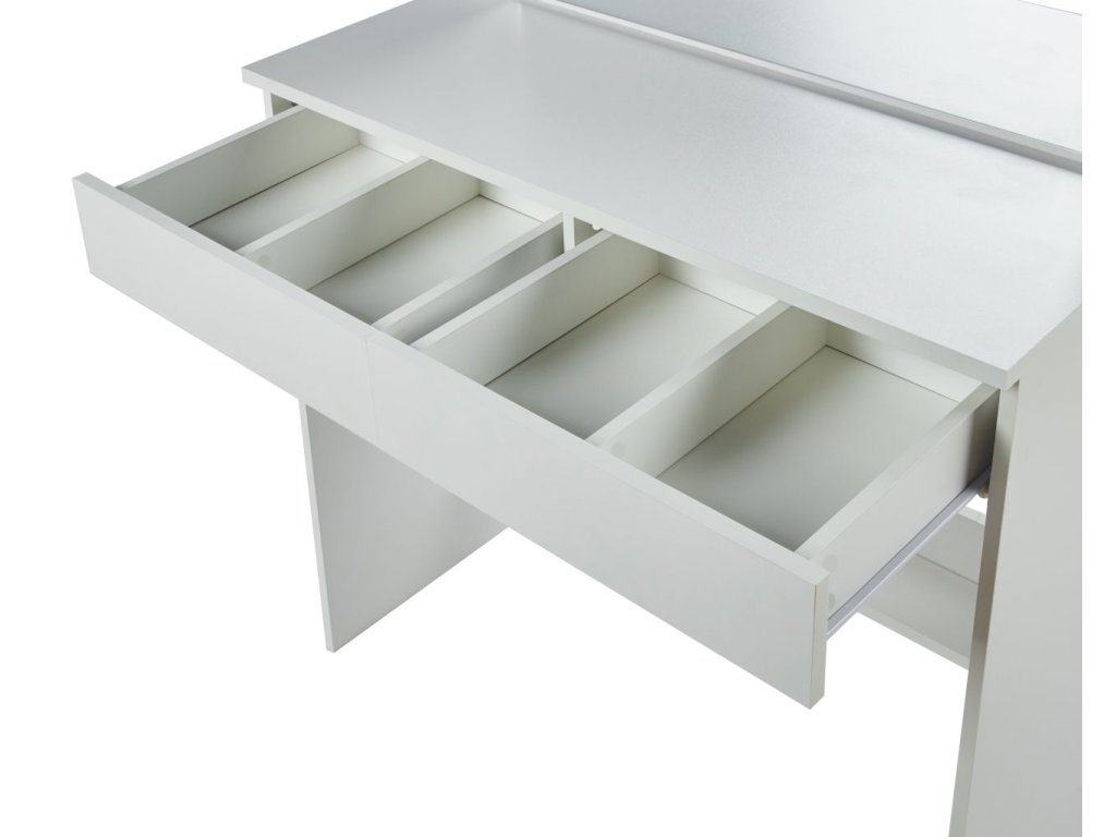 Dve zásuvky ponúkajú organizovaný priestor na kozmetiku, šperky a všetky potreby pre krásnu.