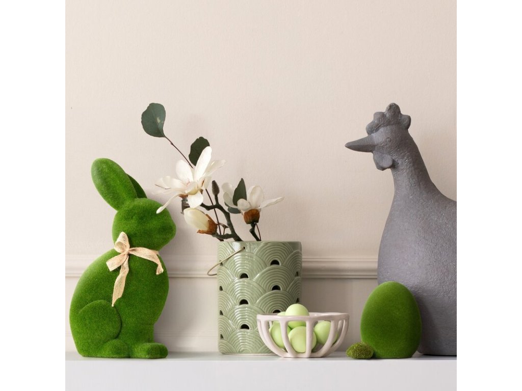 Táto elegantná zelená figúrka dokonale zapadne do prírodného alebo škandinávského štýlu bývania. Kombinujte ju s ďalšími veľkonočnými dekoráciami alebo použite ako jednoduchý, ale účinný jarný akcent v obývačke či na jedálenskom stole.