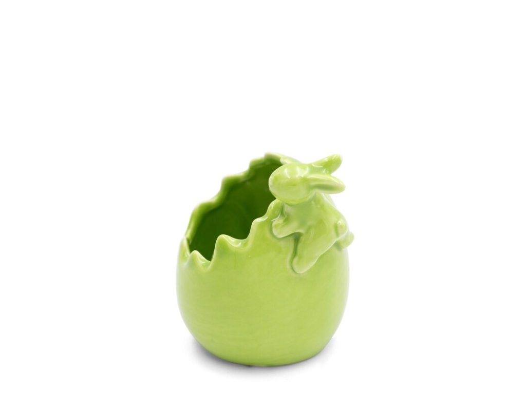 Dekorácia je vyrobená zo 100 % keramickej hliny, ktorá zaručuje pevnosť, stabilitu a kvalitné spracovanie. Lesklá zelená glazúra dodáva figúrke svieži vzhľad a krásne odráža svetlo. Zelená farba pôsobí prirodzene, harmonicky a ľahko sa kombinuje s ďalšími jarnými a veľkonočnými doplnkami.