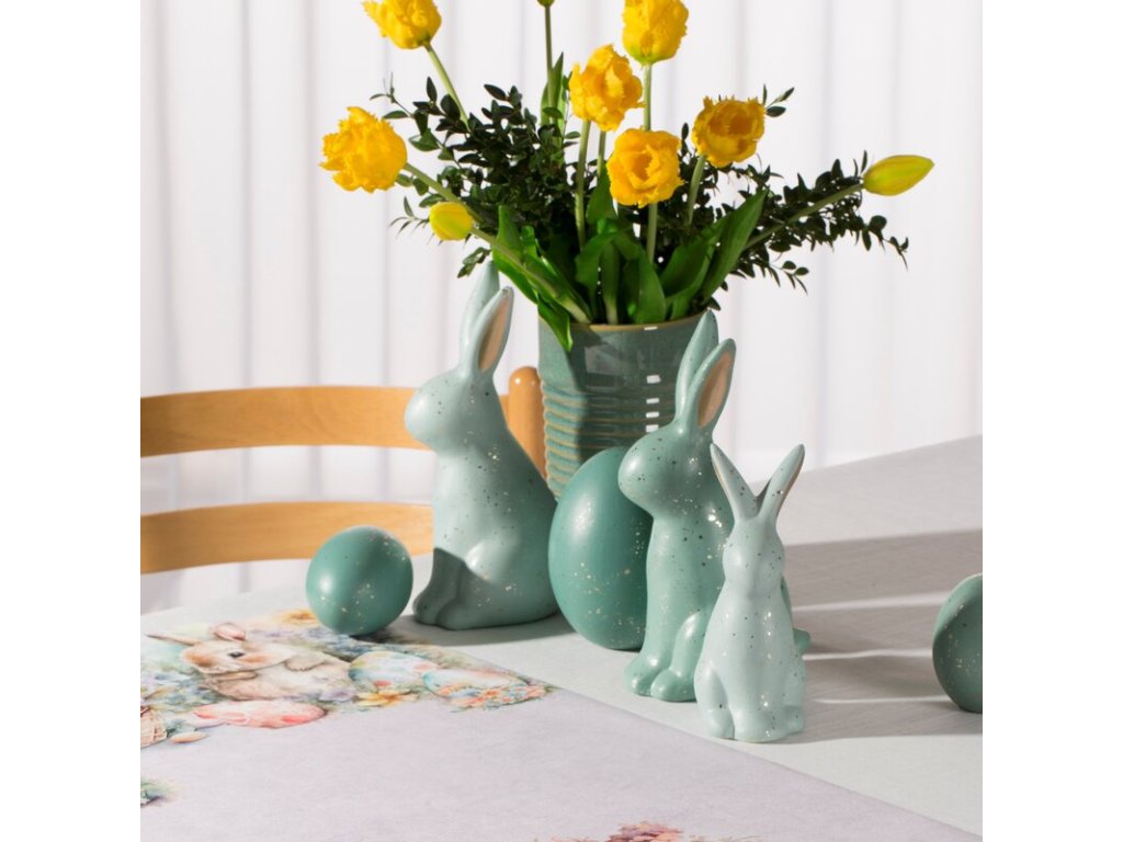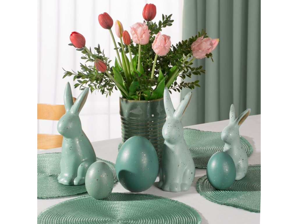 Vďaka precíznemu spracovaniu a harmonickým farebným prechodom figúrka upúta pozornosť a stane sa sofistikovaným veľkonočným akcentom. Je ideálna ako dekorácia stola, komody alebo veľkonočná dekorácia interiéru...