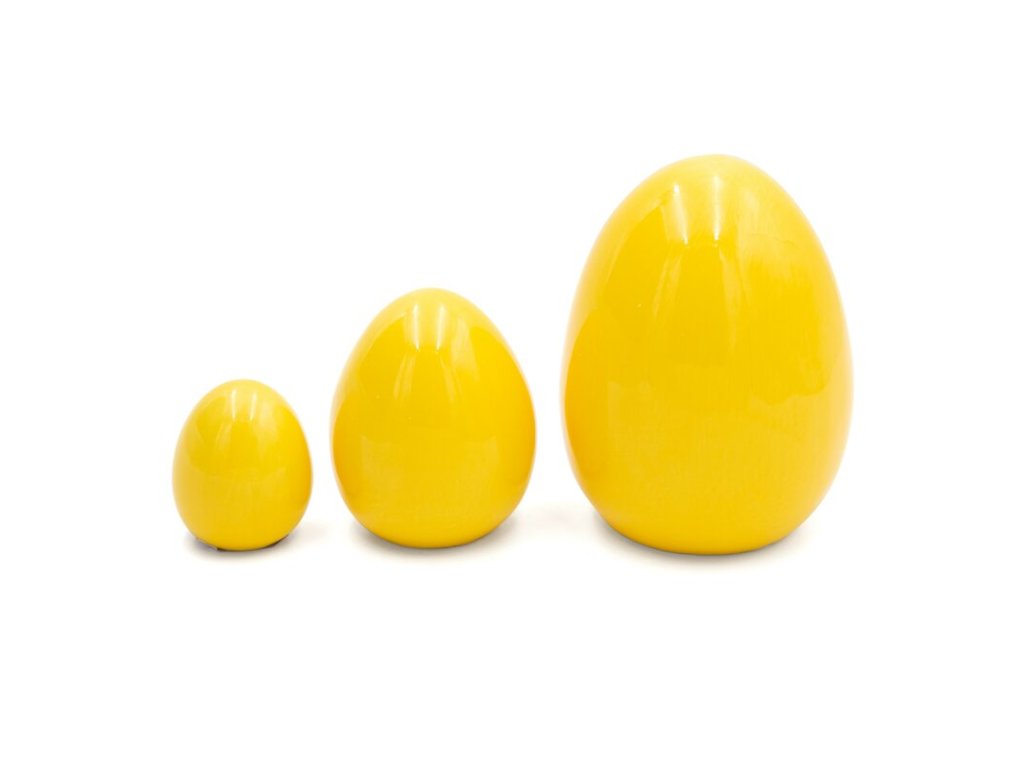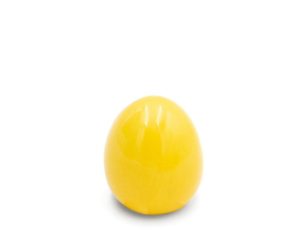 Dekorácia je vyrobená zo 100 % keramickej hliny, čo zaručuje pevnosť, stabilitu a kvalitné spracovanie. Lesklá žltá glazúra krásne odráža svetlo a dodáva vajíčku elegantný vzhľad. Žltá farba symbolizuje jar, prírodu a nový začiatok, a preto je ideálnou voľbou na veľkonočnú výzdobu.