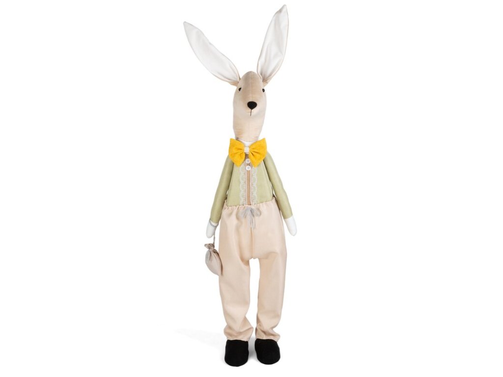 Zajac v pôvabnom outfite, ktorý zôrazňuje jeho elegantný vzhľad, doplnený o štýlový motýlik sa stane dokonalým dekoratívnym prvkom každého interiéru.
