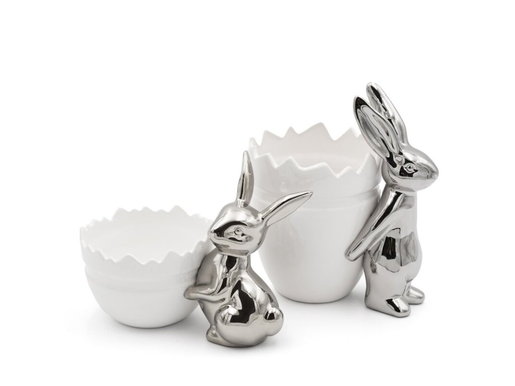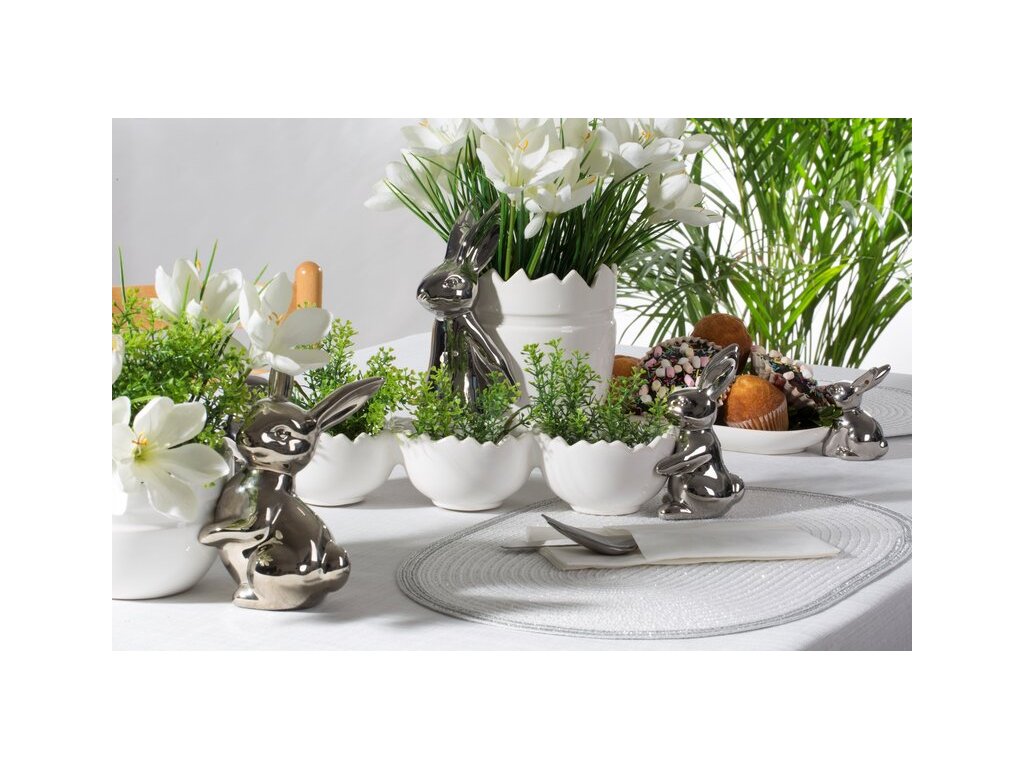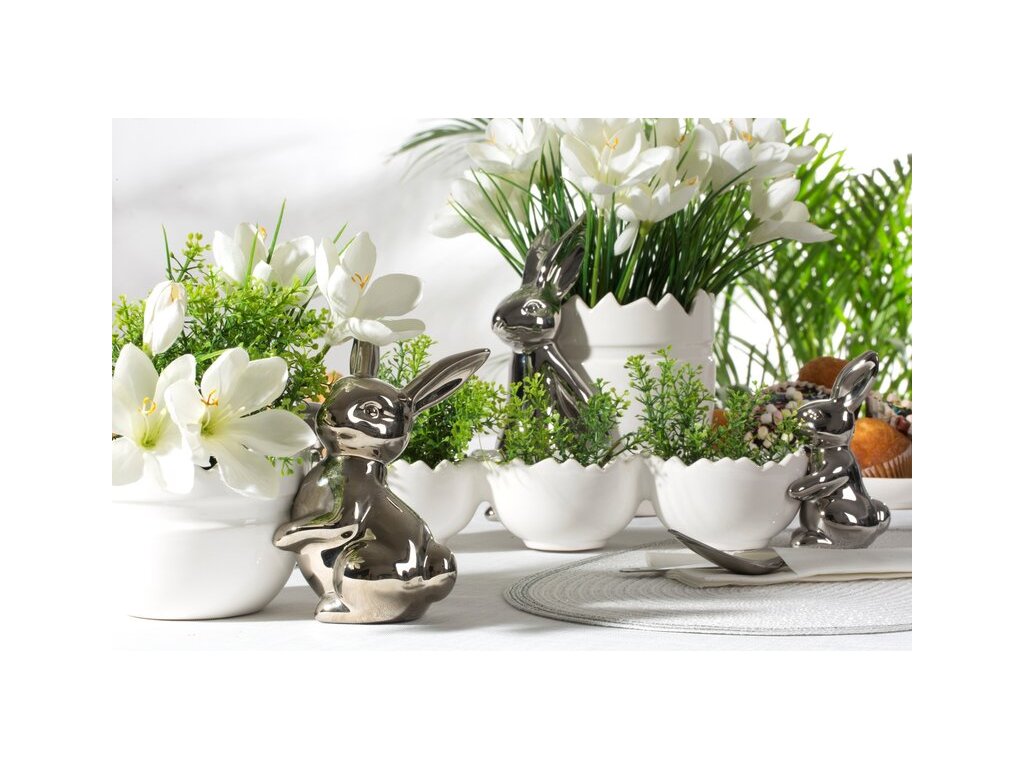 Kúzlu pridáva roztomilý zajačik, ktorý sa opiera chrbátikom o škrupinku a vytvára jedinečný a teplý dekoratívny akcent.