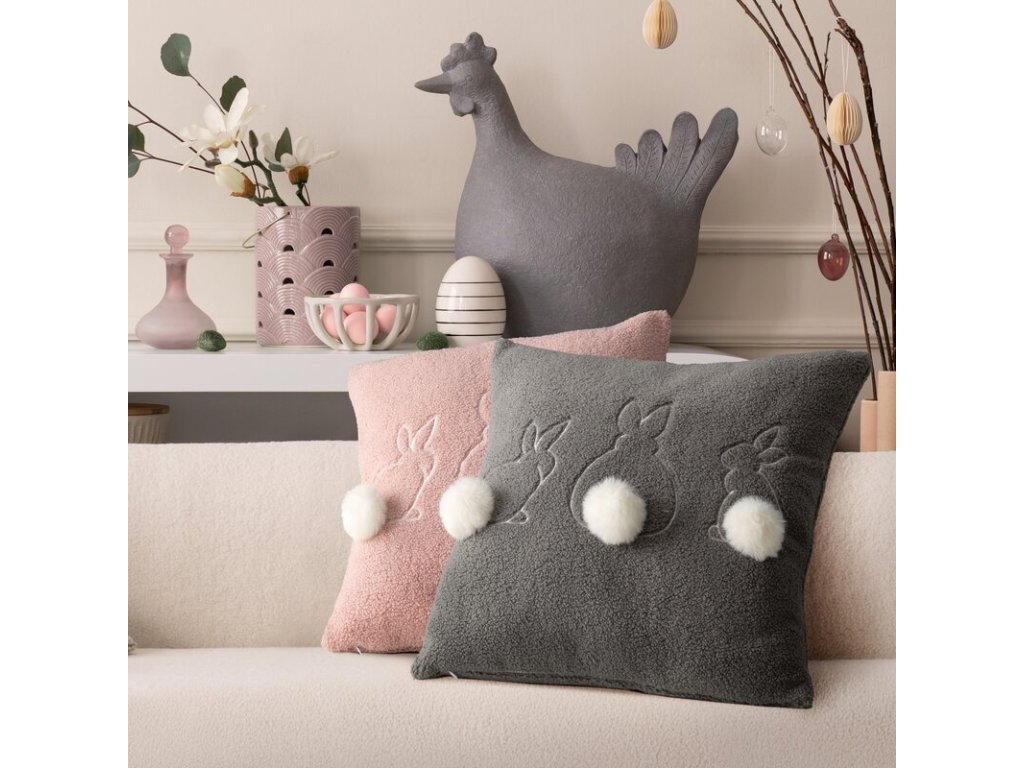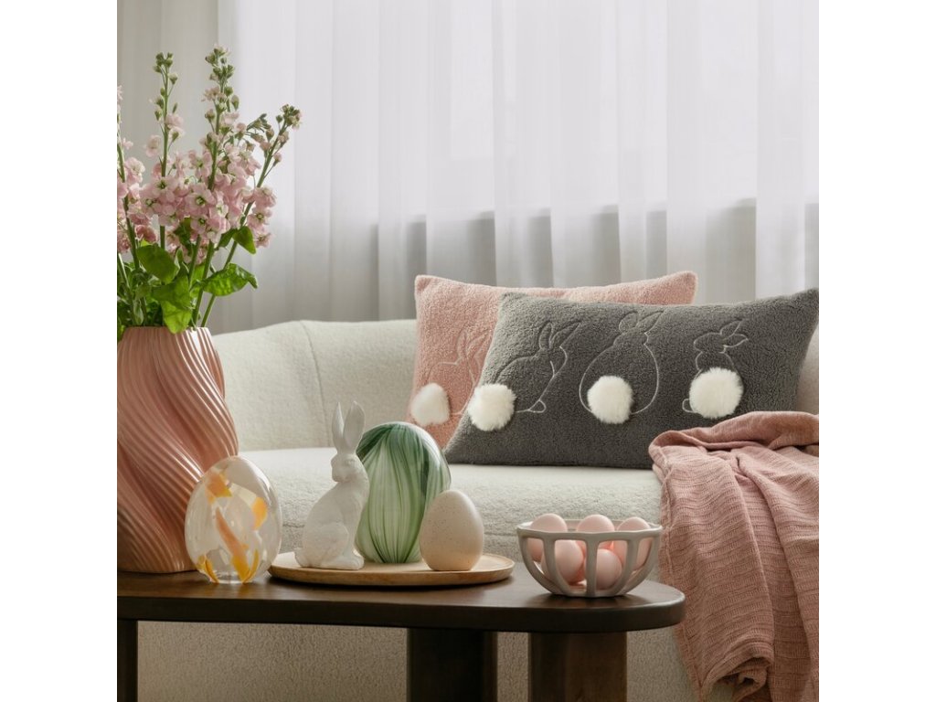 Jeho príjemná štruktúrna textúra zútulňuje interiér a vyšívaný vzor roztomilých zajačikov dodáva radostný veľkonočný akcent.