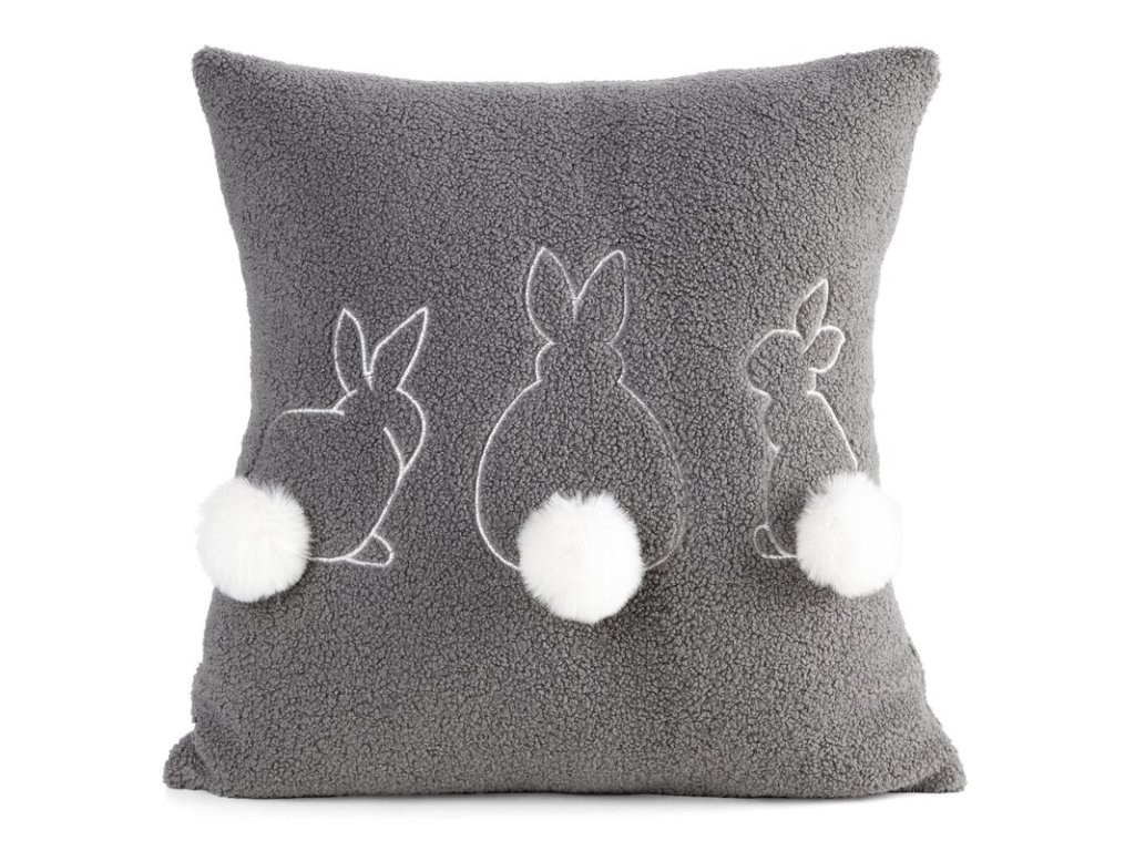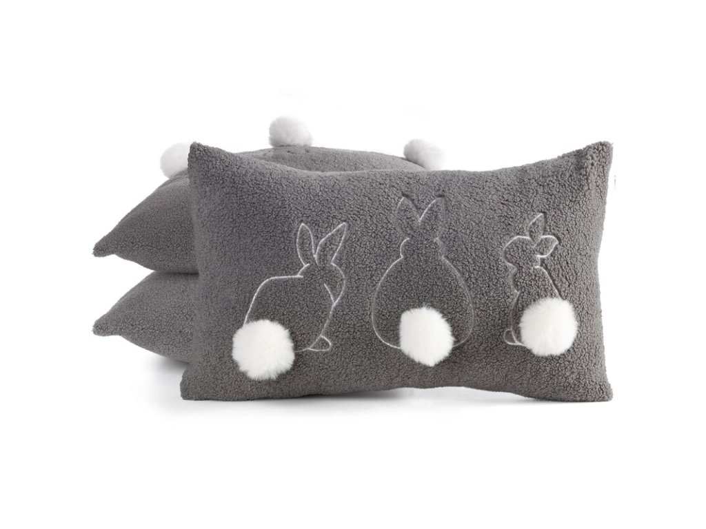 Celok dopĺňajú nadýchané brmbolce imitujúce zajačie chvostíky, ktoré dodávajú obliečke na vankúš neopakovateľné čaro.
