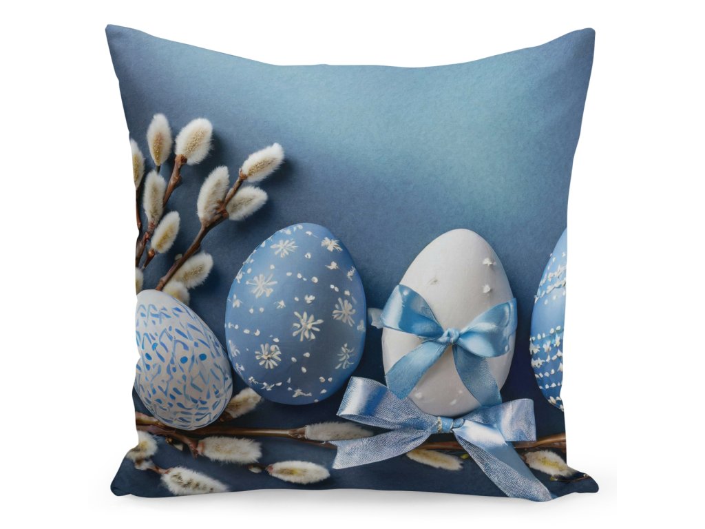 Táto obliečka predstavuje klasickú veľkonočnú kompozíciu - veľkonočné vajíčka s bahniatkami.