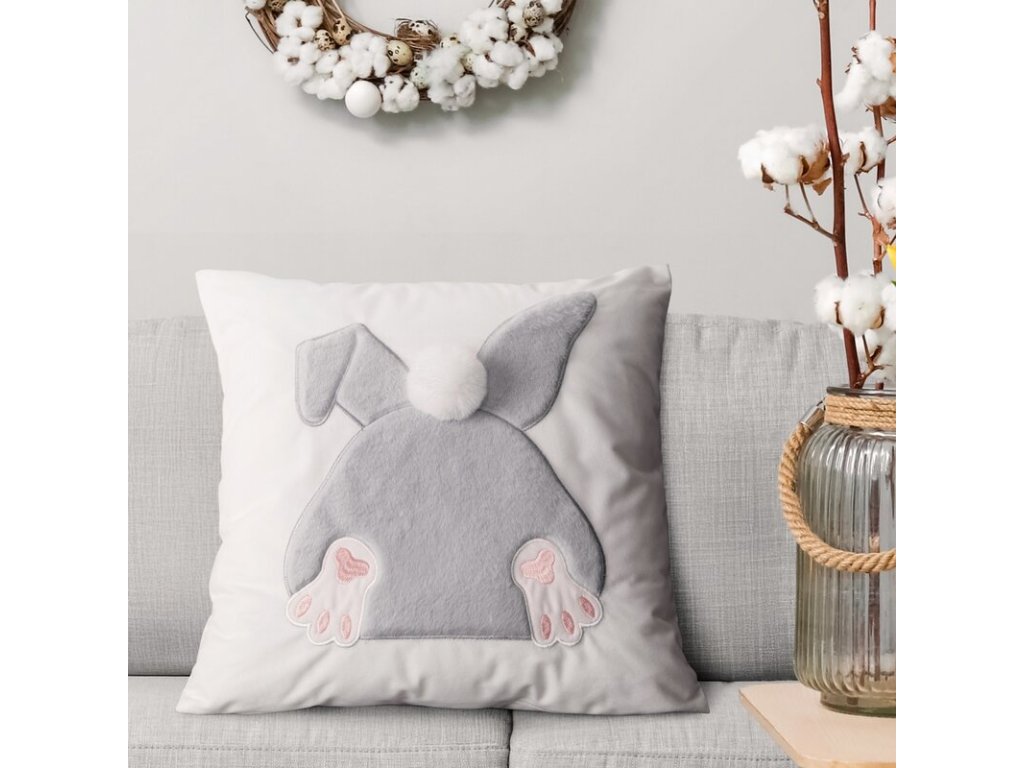 Veľkonočná obliečka na vankúš so zajačikom 45x45cm strieborná