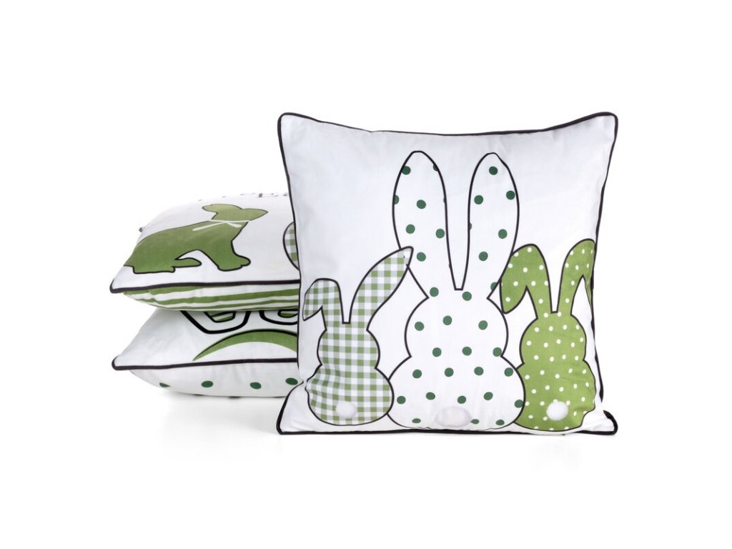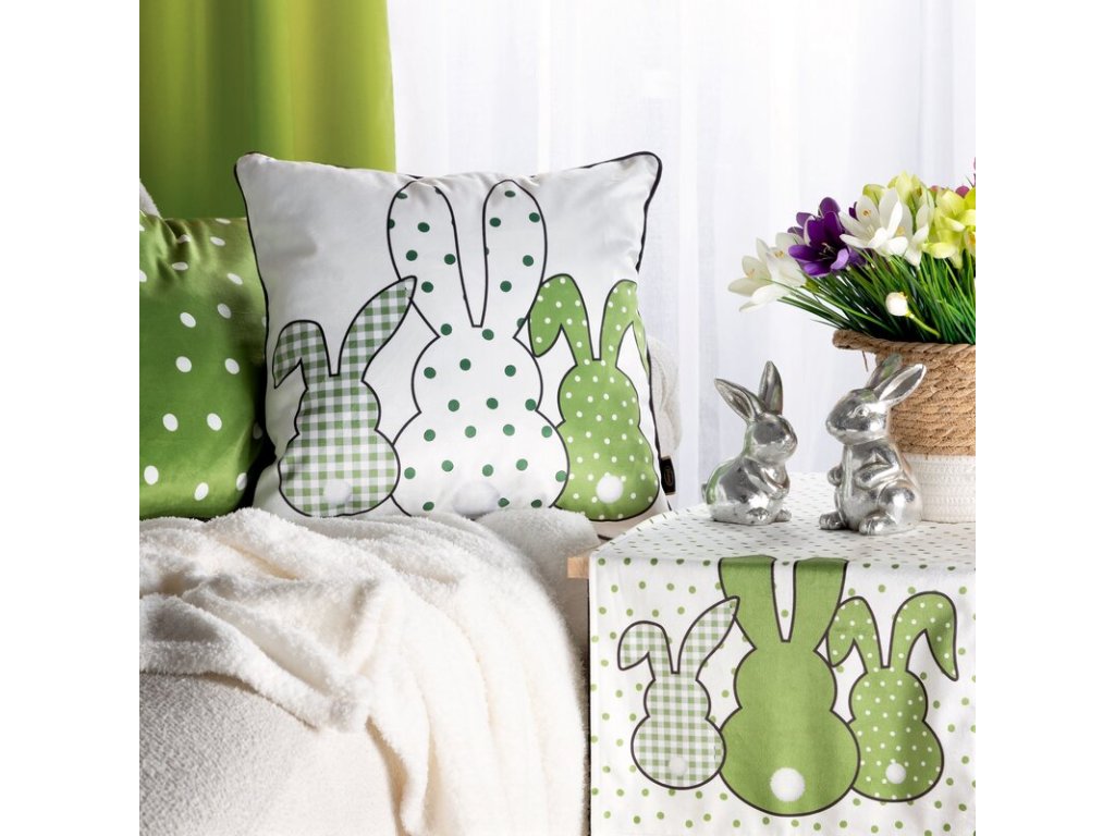 Veľkonočná obliečka na vankúš SPRING 3 zdobená potlačou zajačikov - biela