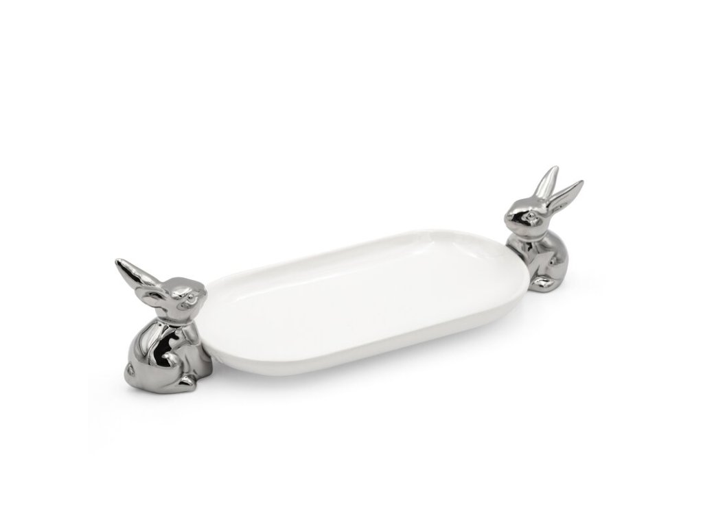 Jeho subtílny dizajn zvýrazňujú dva rozkošné zajačiky umiestnené na okrajoch a dodávajú celku jedinečné a slávnostné čaro.