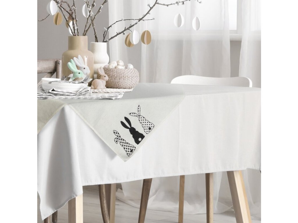 Veľkonočný obrus v bielej farbe je elegantná dekorácia stola, ktorá vnesie do vášho interiéru sviatočnú náladu.