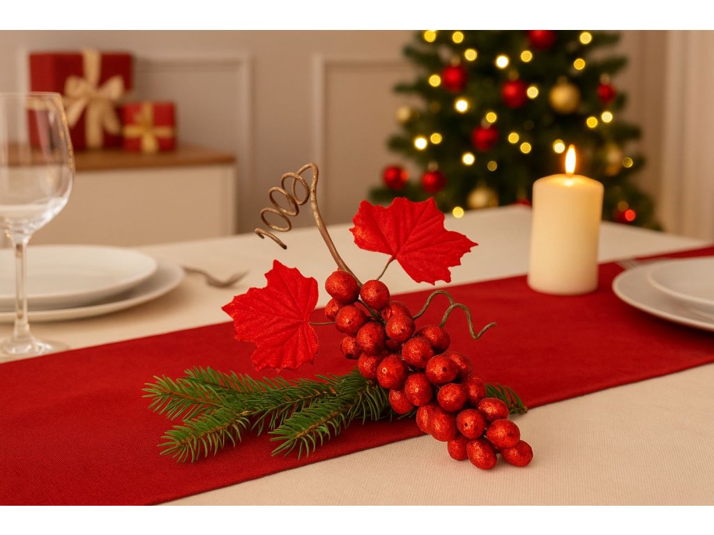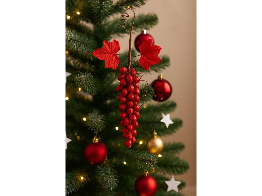 Vianočná dekorácia HROZNO 552 v červenej farbe 35 x 12 cm/ 6 kusov