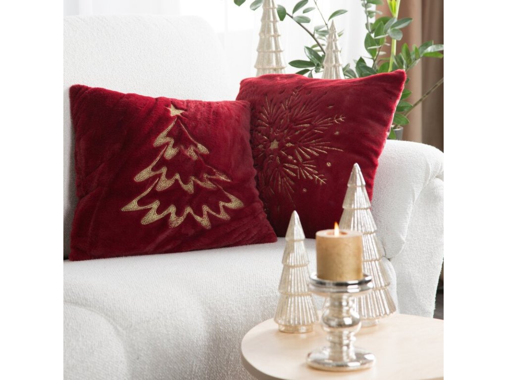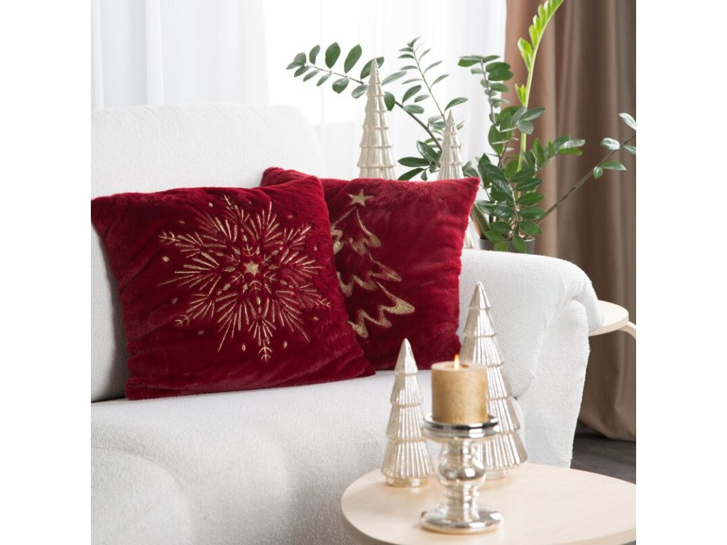 Vianočná dekoračná obliečka na vankúš s motívom stromčeka v bordovej farbe