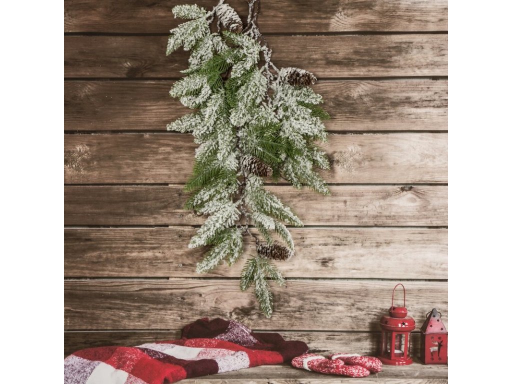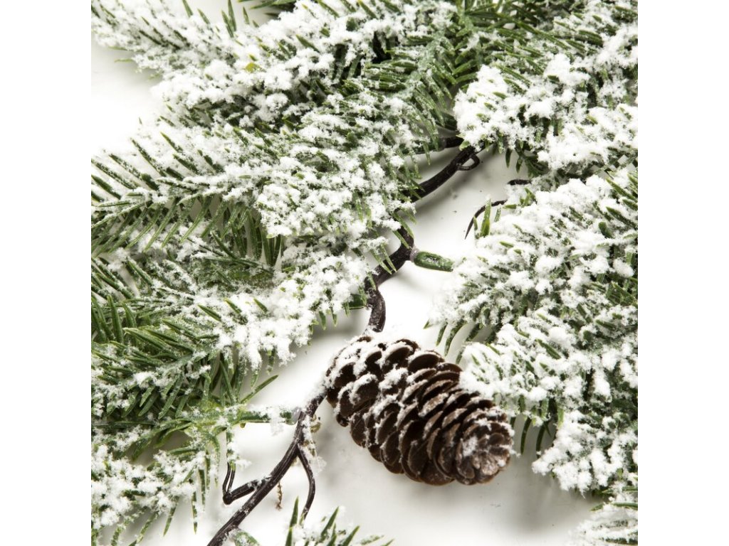 Doprajte si čaro zimnej atmosféry s vianočnou dekoratívnou vetvičkou so zasneženým efektom. Realistické zelené ihličie je jemne pokryté umelým snehom, ktorý pôsobí prirodzene a navodí pocit pravej zimy vo vašom interiéri.