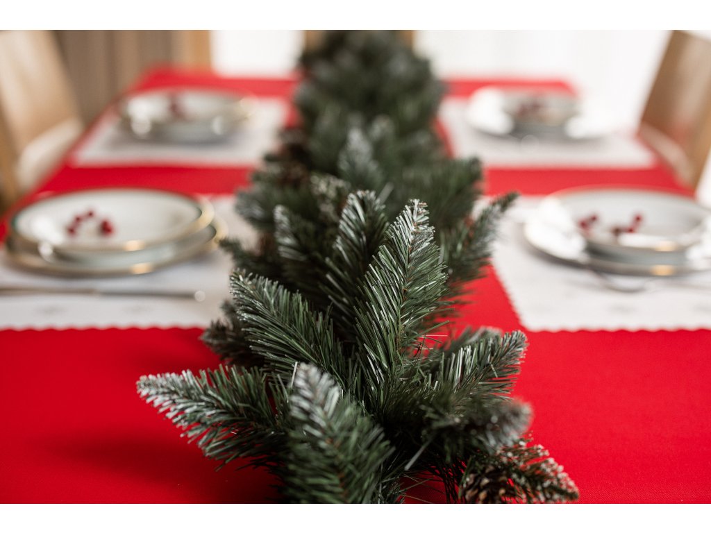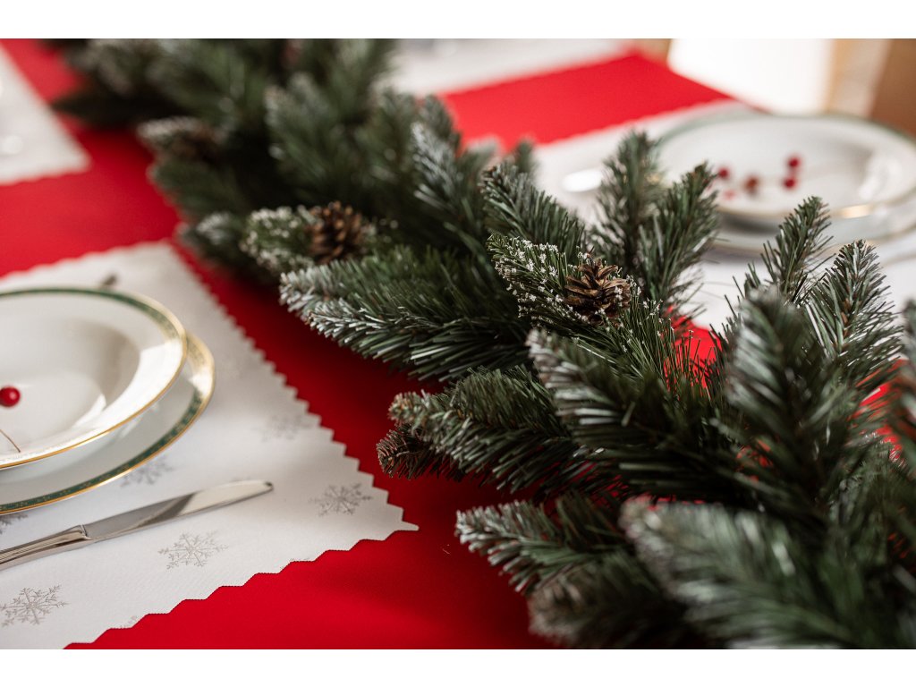 Krásna vianočná dekorácia v podobe girlandy vyrobenej z PVC materiálu so zasneženými koncami.